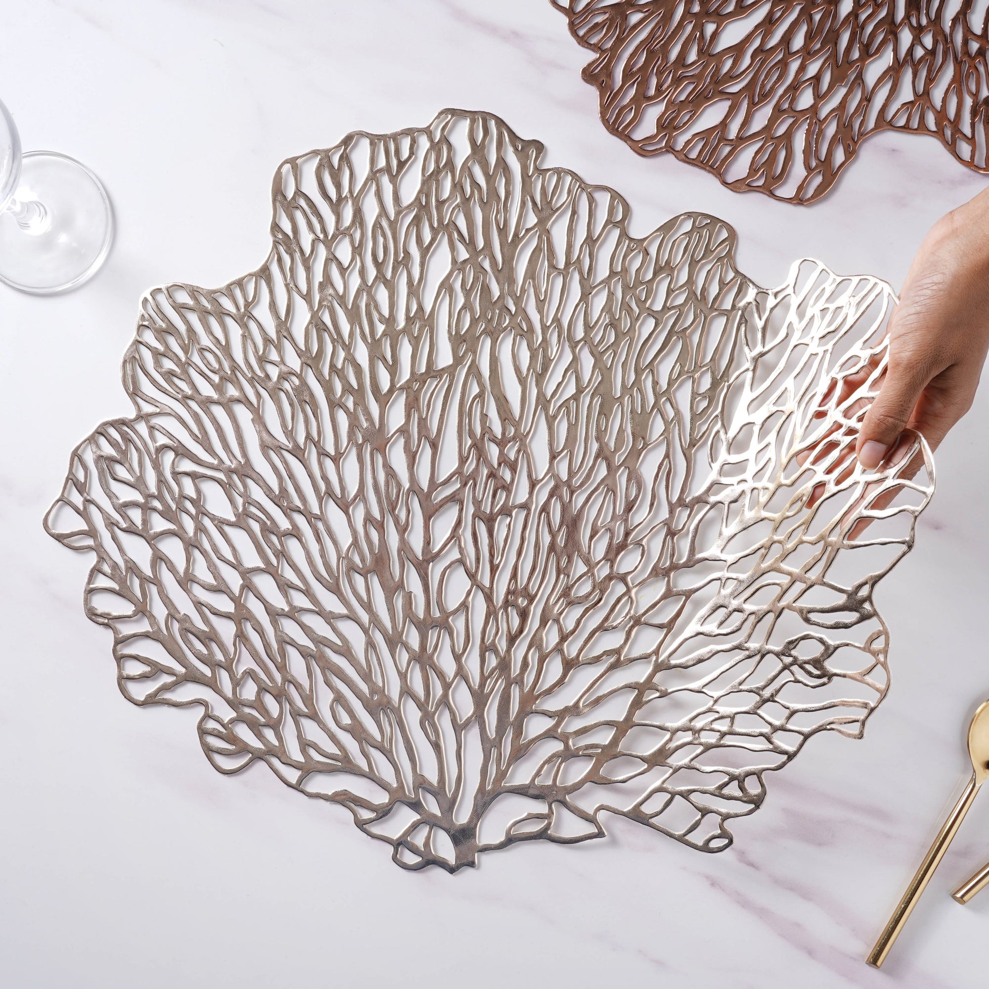 Placemats that are available in three fresh and unique colours- golden, rose gold and silver. The mats are easy to place, clean and store, and provide protection to the table against heat damage and scratches. Add interesting pattern to the everyday dining space by using these mats crafted in unique shapes and exotic designs.