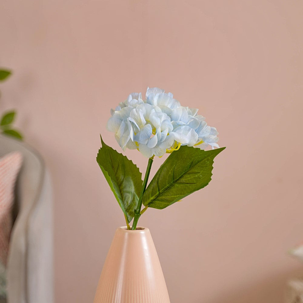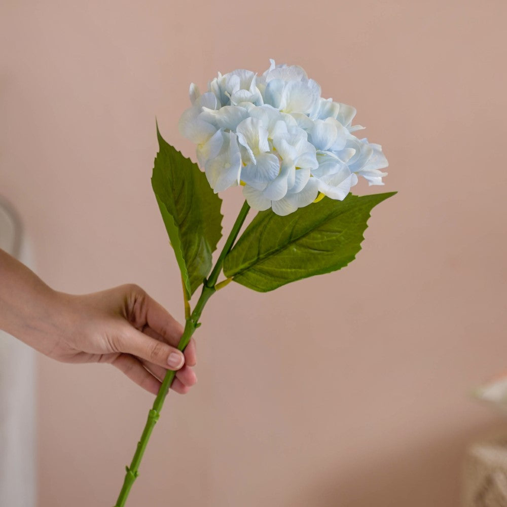 Indulge in the ethereal beauty of our light blue artificial hydrangea flower stem, a captivating addition to enhance your floral arrangements or home decor. This exquisite bloom showcases a delicate and serene shade of light blue, evoking a sense of tranquility and enchantment. The meticulously crafted petals boast a lifelike texture, intricately designed to mimic the natural allure of hydrangeas. With its everlasting charm, this artificial stem offers a hassle-free way to enjoy the timeless beauty of hydrangeas throughout the year. Whether used as a standalone centerpiece or combined with other artificial blooms, the light blue hydrangea effortlessly infuses any space with a touch of elegance and serenity, leaving a lasting impression on all who admire its mesmerizing presence.