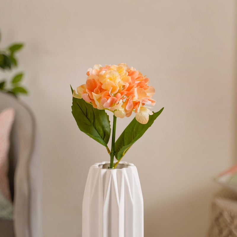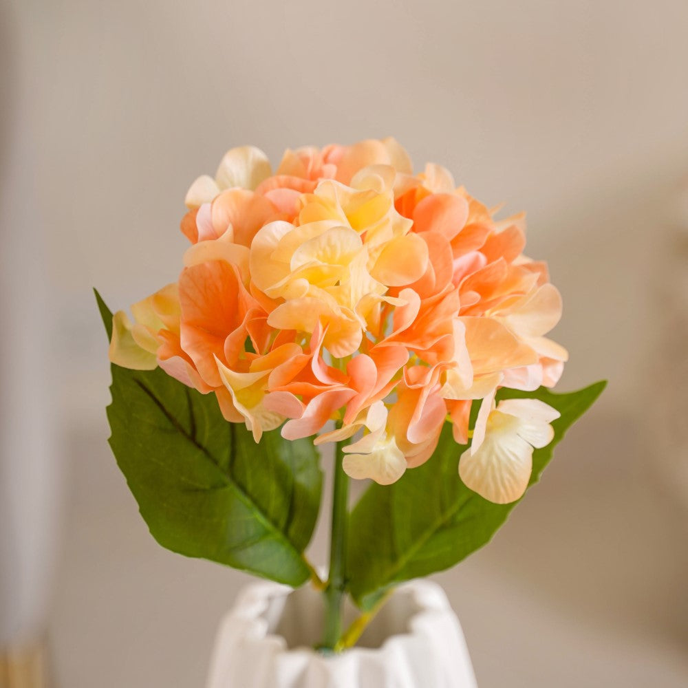 Embrace the everlasting beauty of our peach-colored artificial hydrangea flower stem, a stunning addition to elevate your floral arrangements or home decor. This exquisite bloom captures the soft and enchanting hue of peach, exuding a sense of warmth and serenity. The meticulously crafted petals showcase intricate details and a lifelike texture, closely mirroring the natural allure of real hydrangeas. With its enduring charm, this artificial stem offers a hassle-free way to enjoy the beauty of hydrangeas all year round. Whether used as a standalone centerpiece or combined with other artificial blooms, the peach-colored hydrangea effortlessly infuses any space with elegance and natural grace, leaving a lasting impression on all who admire its timeless presence.