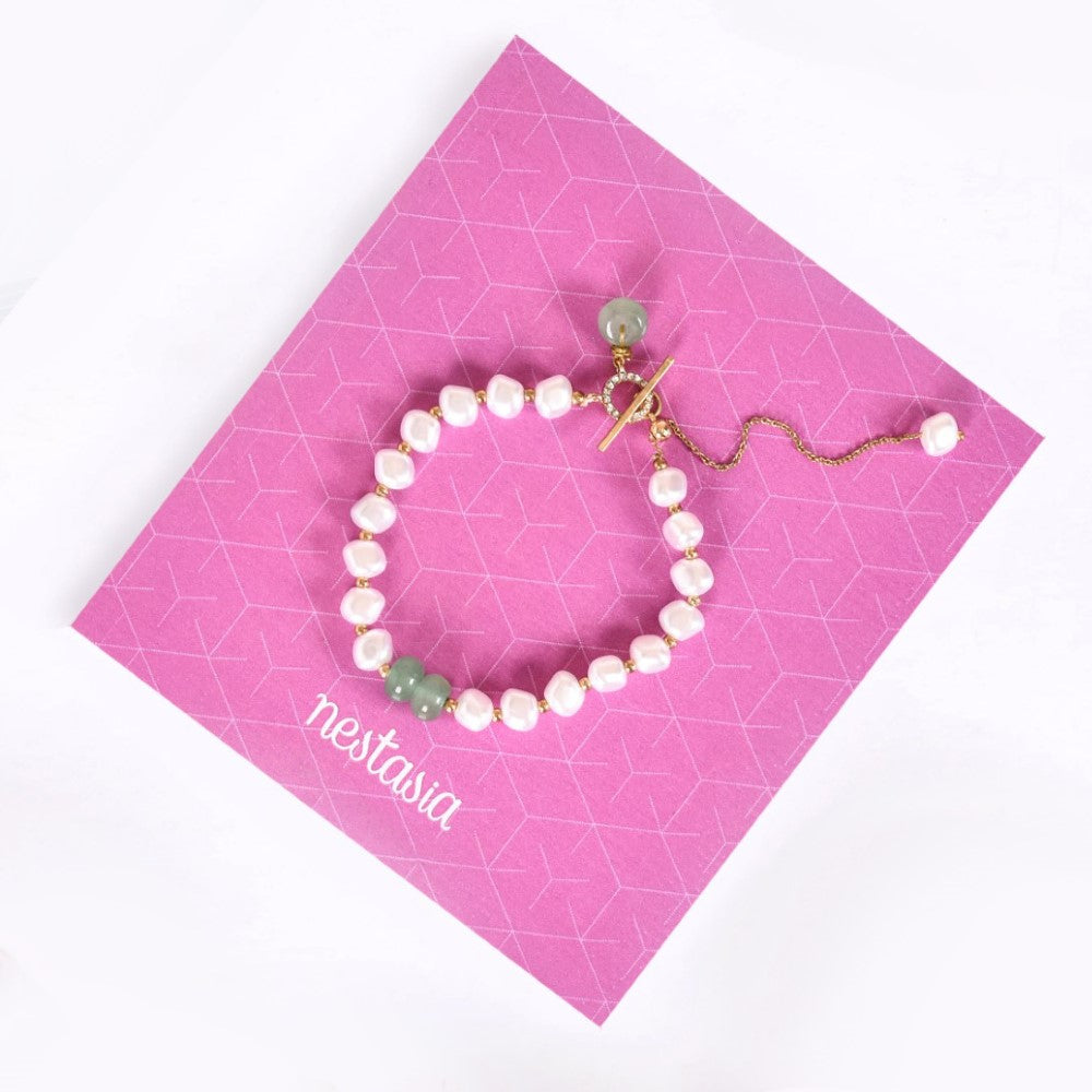 Faux Pearl And Jade Charm Bracelet