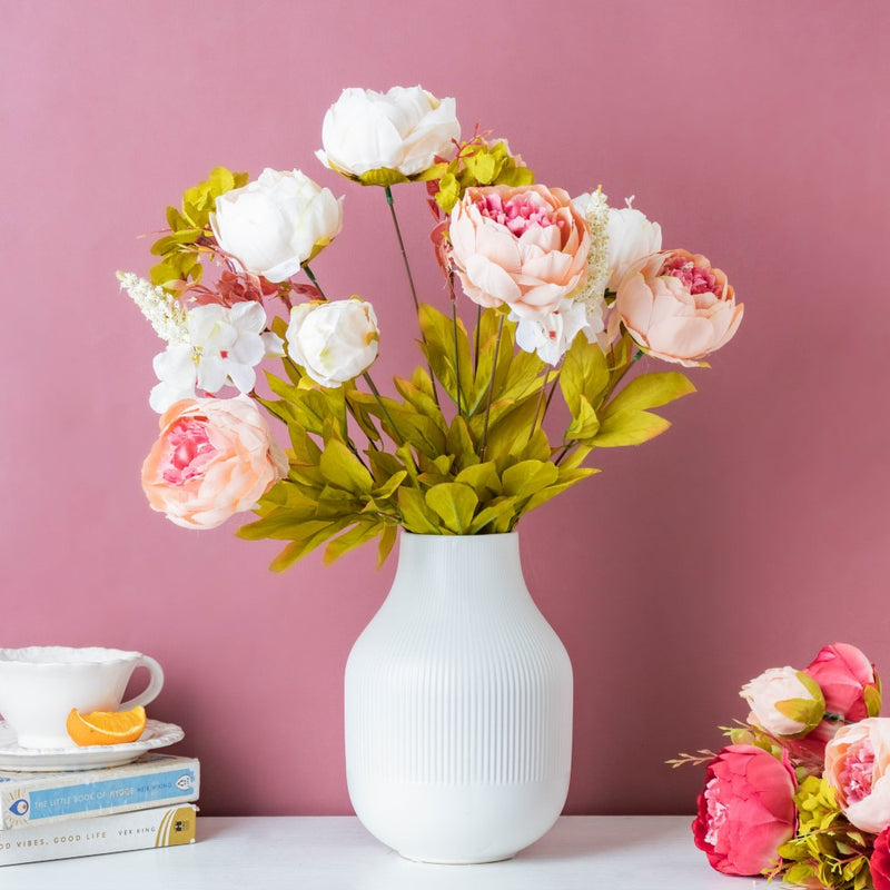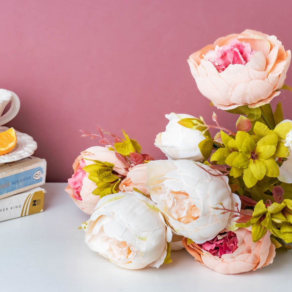 Nestip: Add multiple artificial leaves and flowers with the floral bunch to create an elaborate flower arrangement.