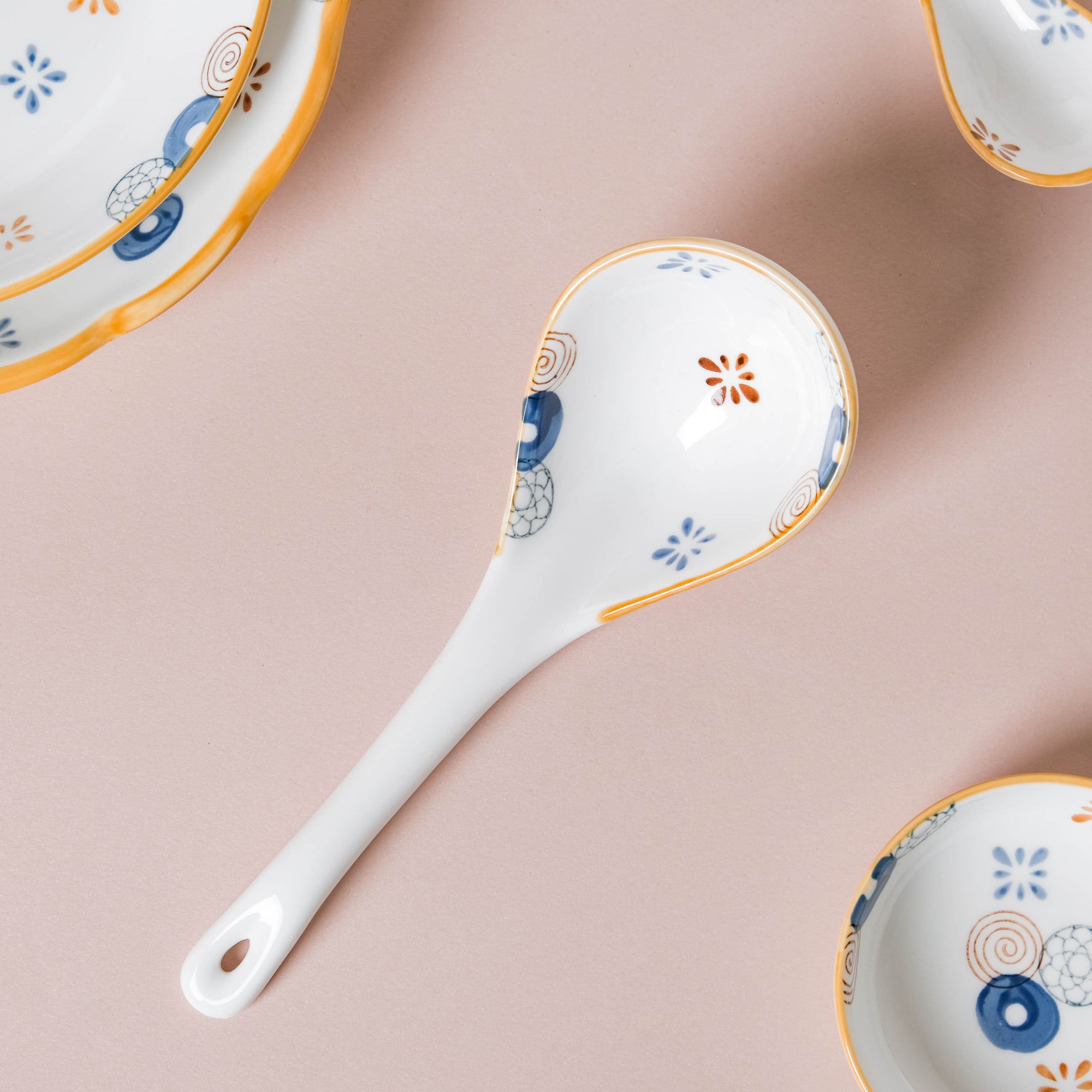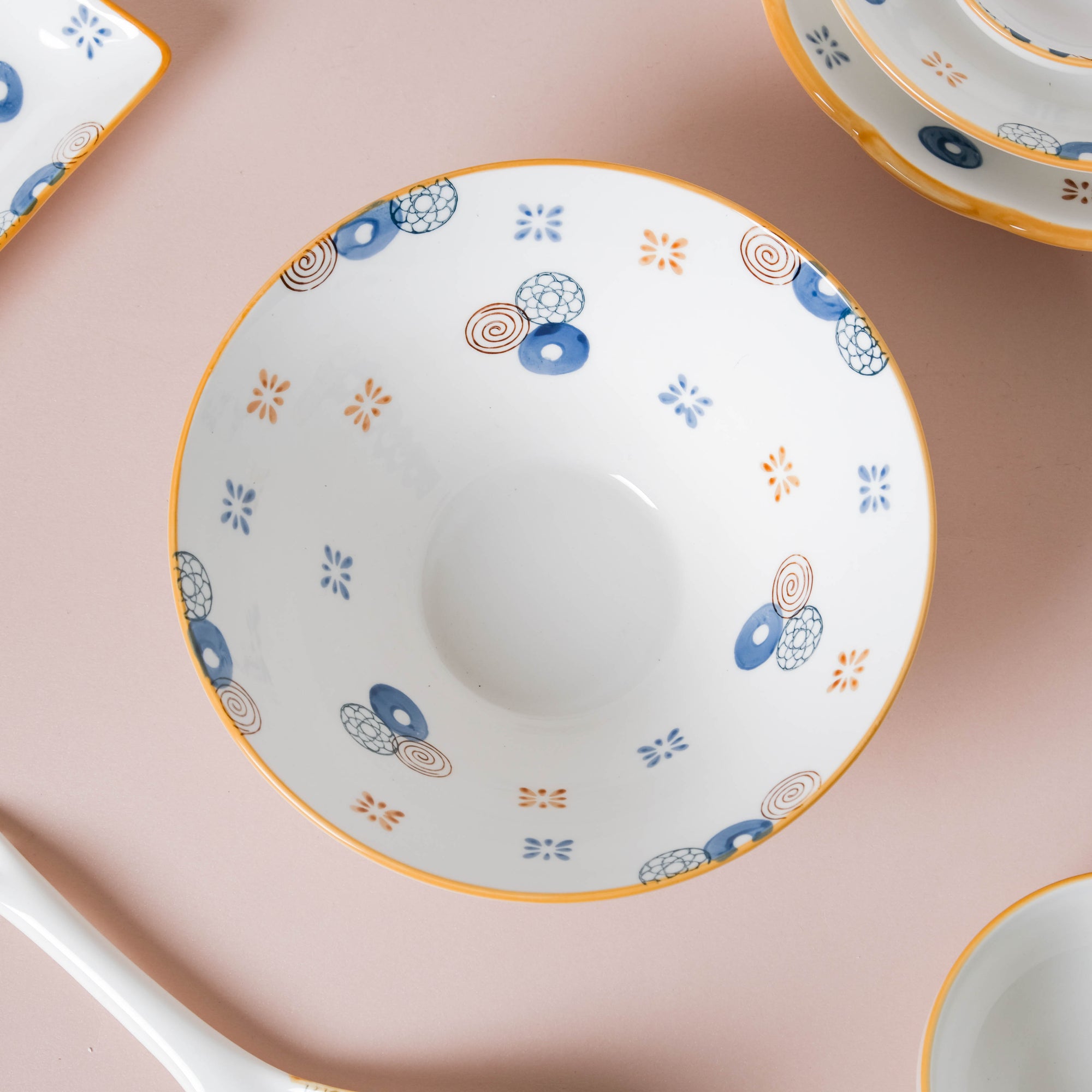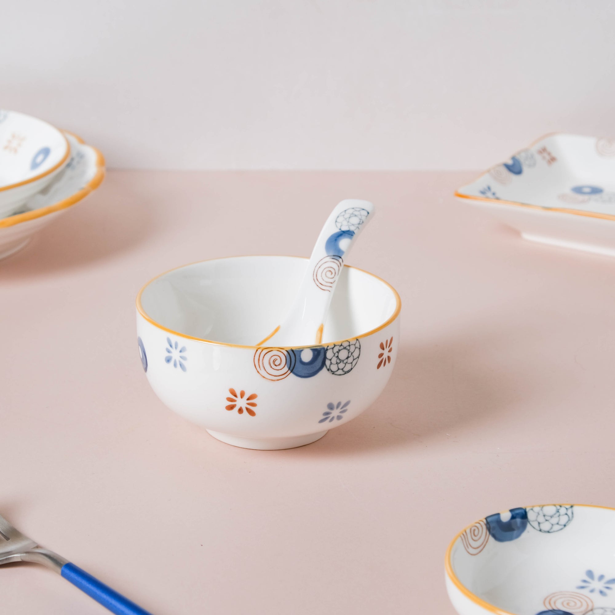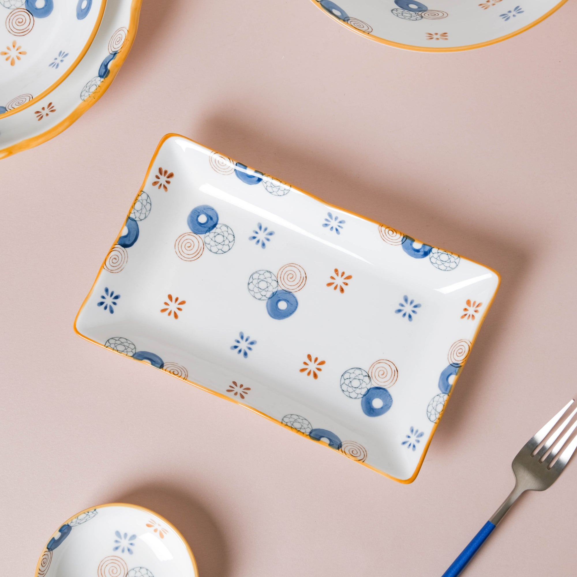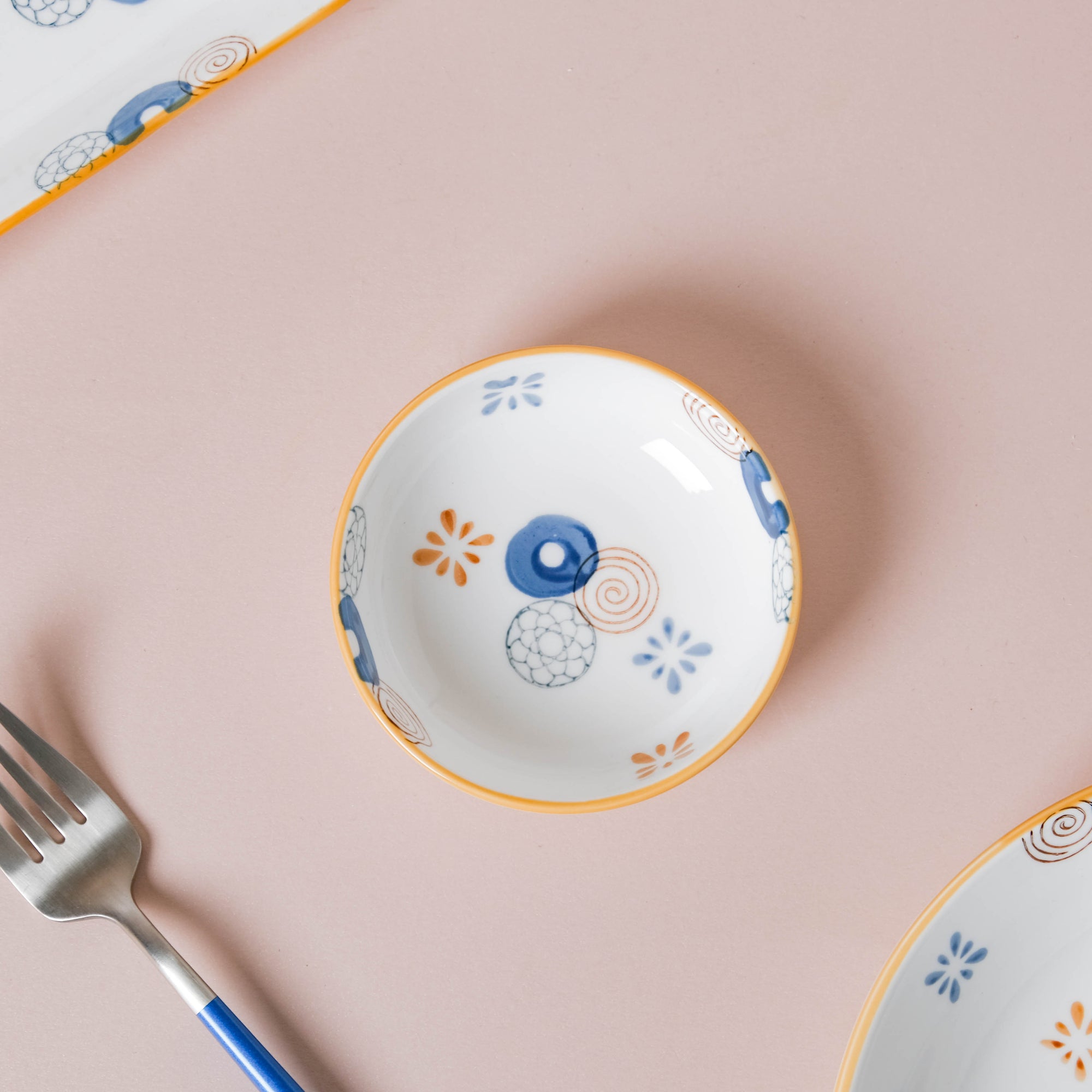 A celebration is incomplete without a grand spread, cheer, and the presence of our cherished ones. The Feliz pasta set, with happiness in its name, is an amalgamation of small and large bowls and plates to serve joyousness in all portions. The ceramic pasta set is an embodiment of 6 pasta plates, 6 dip bowls, 6 side/soup bowls, 6 deep/salad plates, 1 long plate, 1 small and 1 large serving bowl, 1 ramen bowl, 6 soup spoons, and 2 serving spoons. With patterns that are clinks of magic, use the eclectic set while hosting a housewarming or on the occasions of Diwali, Christmas, Mother’s Day, or Father’s Day to spread warmth and fondness.