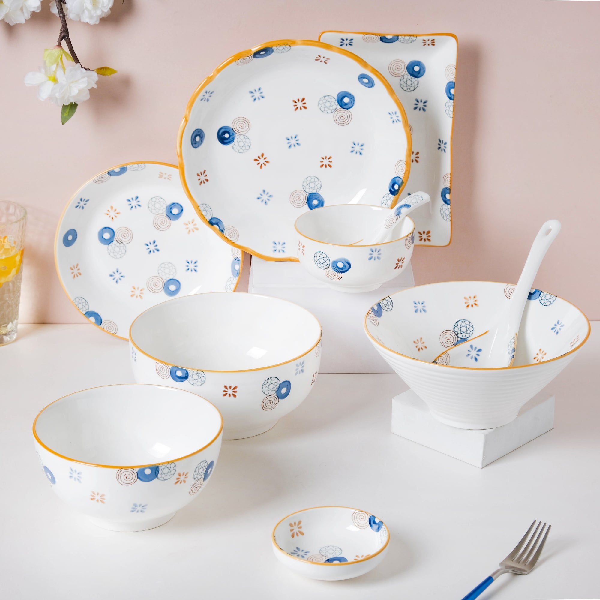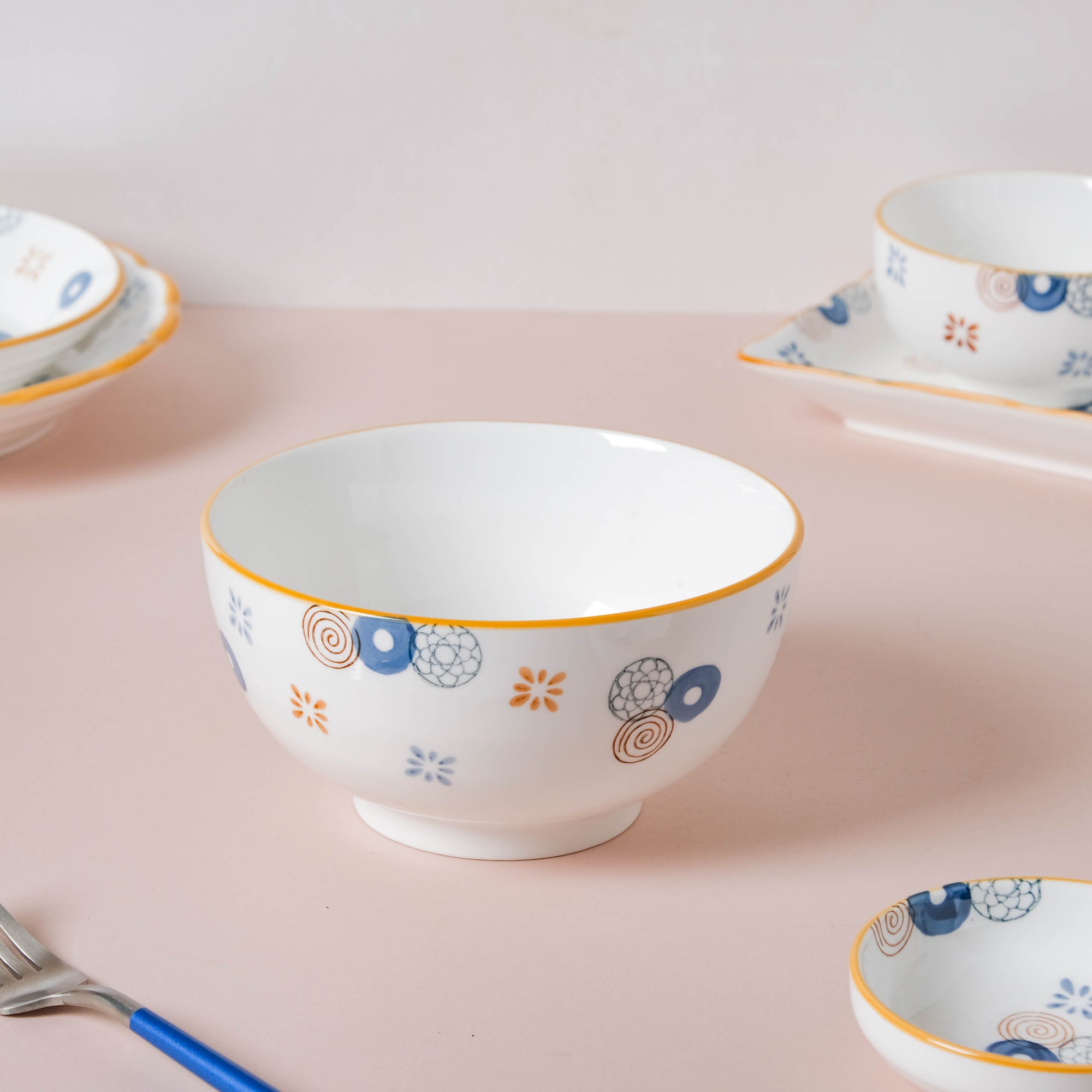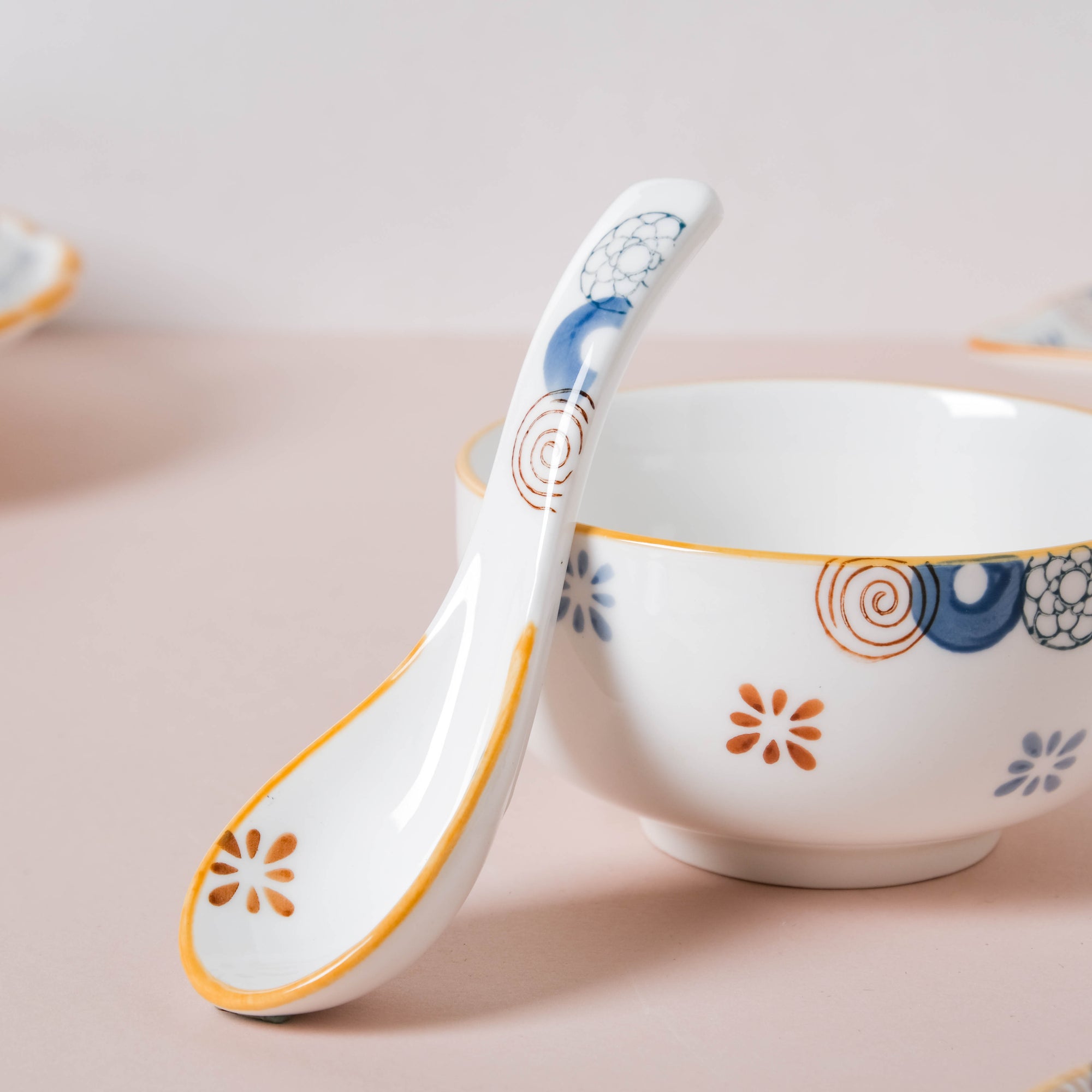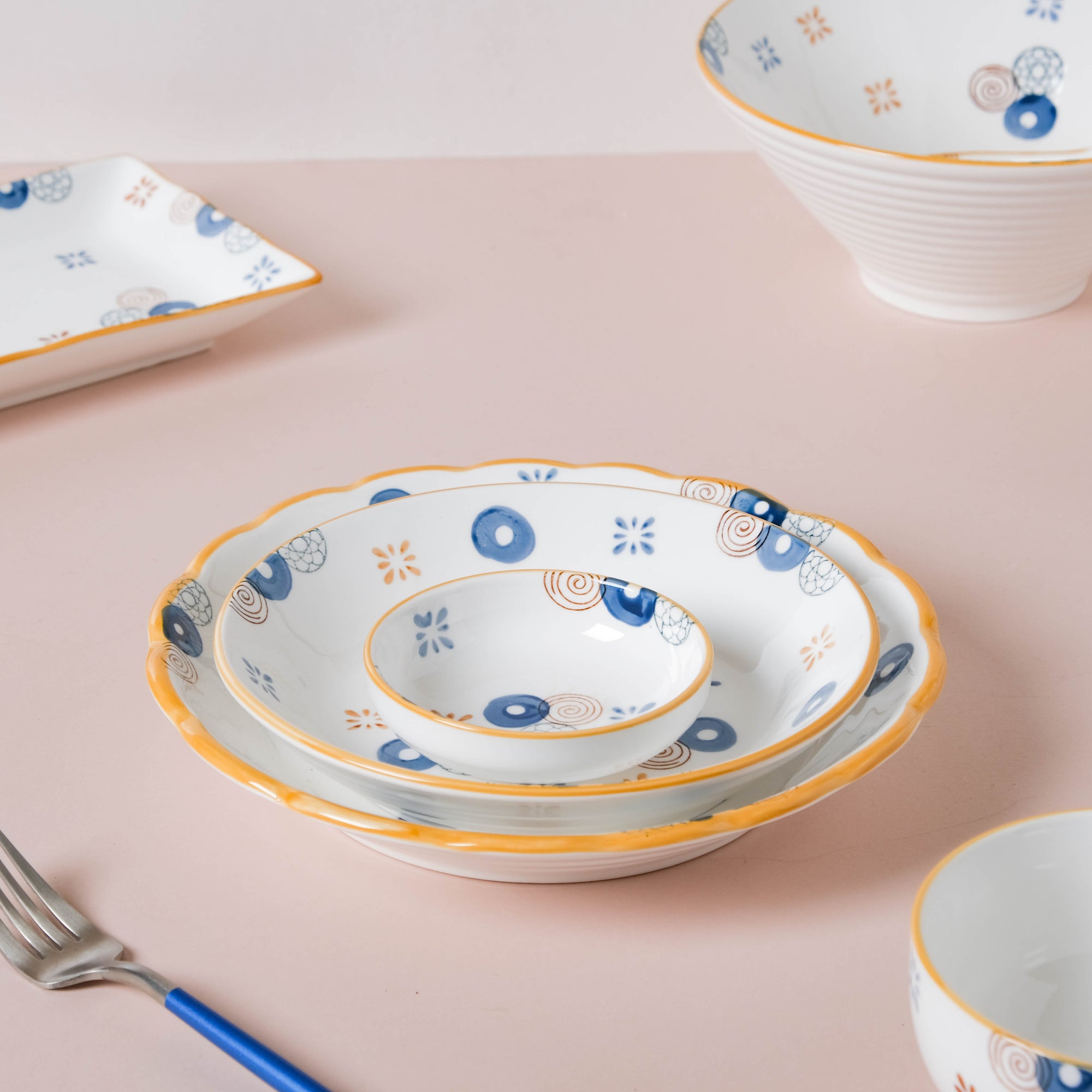 A celebration is incomplete without a grand spread, cheer, and the presence of our cherished ones. The Feliz pasta set, with happiness in its name, is an amalgamation of small and large bowls and plates to serve joyousness in all portions. The ceramic pasta set is an embodiment of 6 pasta plates, 6 dip bowls, 6 side/soup bowls, 6 deep/salad plates, 1 long plate, 1 small and 1 large serving bowl, 1 ramen bowl, 6 soup spoons, and 2 serving spoons. With patterns that are clinks of magic, use the eclectic set while hosting a housewarming or on the occasions of Diwali, Christmas, Mother’s Day, or Father’s Day to spread warmth and fondness.