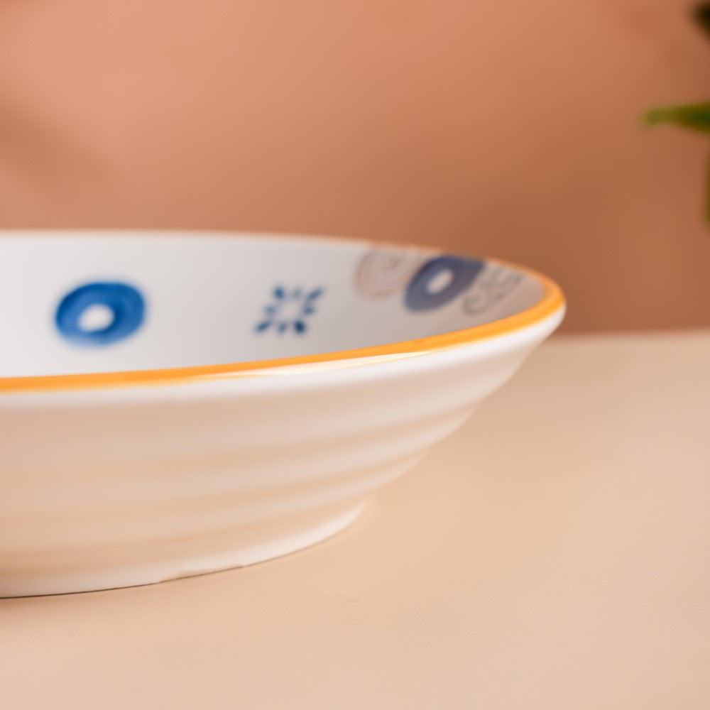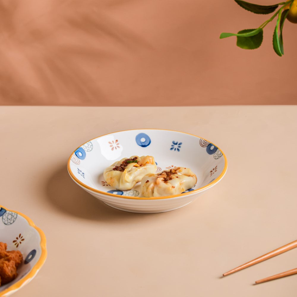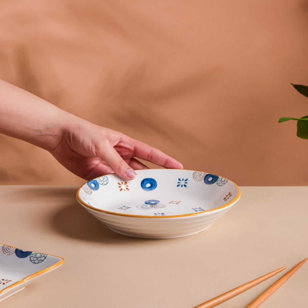 The ceramic deep dish is a sophisticated addition to any dinner table. The dish will look great on any surface and will go with any dinner setting. Use the deep plate to add a touch of luxury to the dining experience. The plate has a modest yet striking design thanks to the colourful patterns in a minimal layout. To create a bright and quirky aesthetic, mix and match the dish with serving plates and soup bowls from the series. The dish is microwave and dishwasher safe, and it makes a one-of-a-kind addition to any layout.