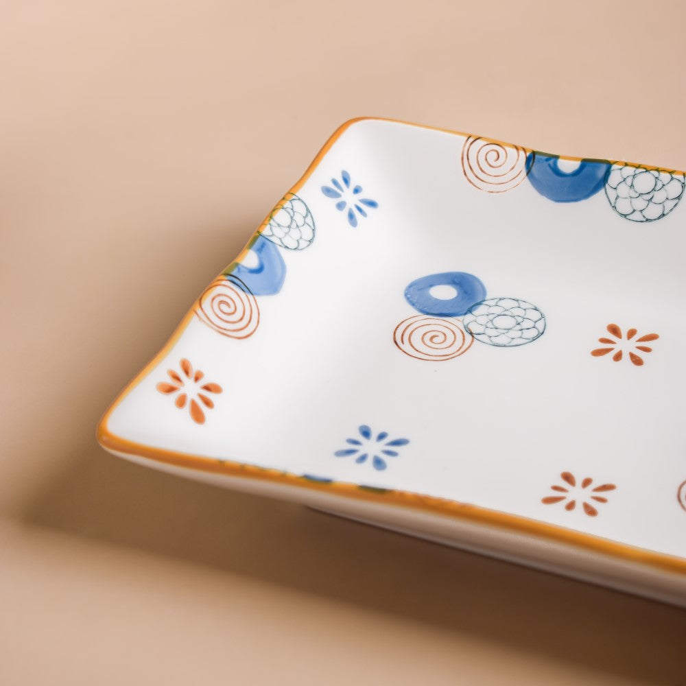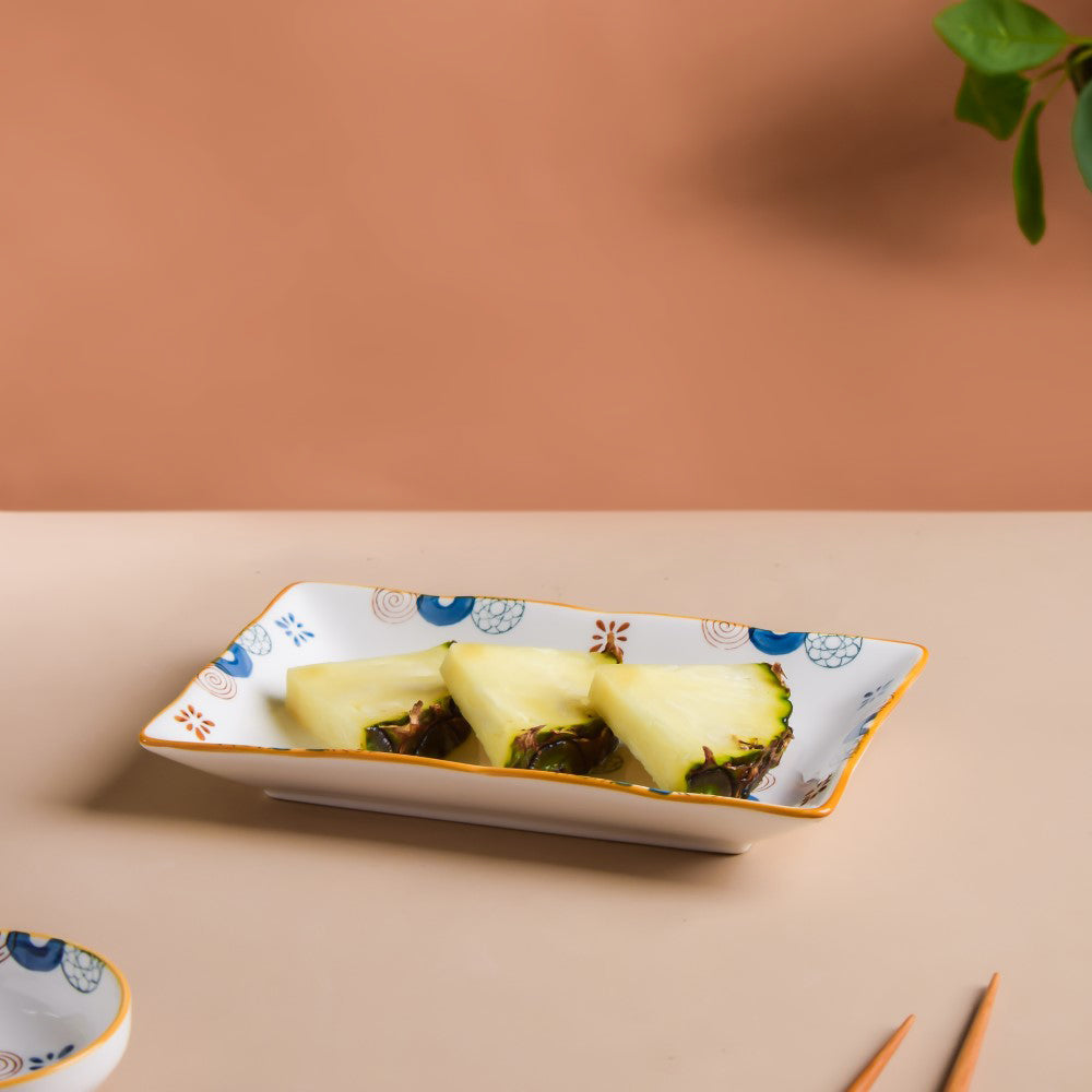 The rectangle snack plate with fun pattern can be used for serving snacks, sweets, desserts and more. The ceramic plate can also be used to serve tea with snacks likes biscuits, chips and more. The rectangle plate can be paired with the dinner collection to complete the set. The plate also offer a splash of colour to the table, making it appear more trendy and appealing.
