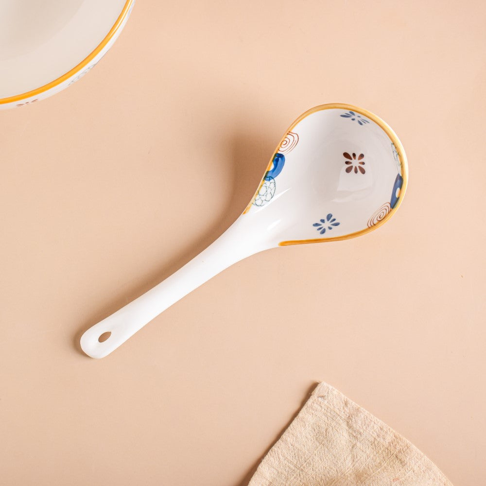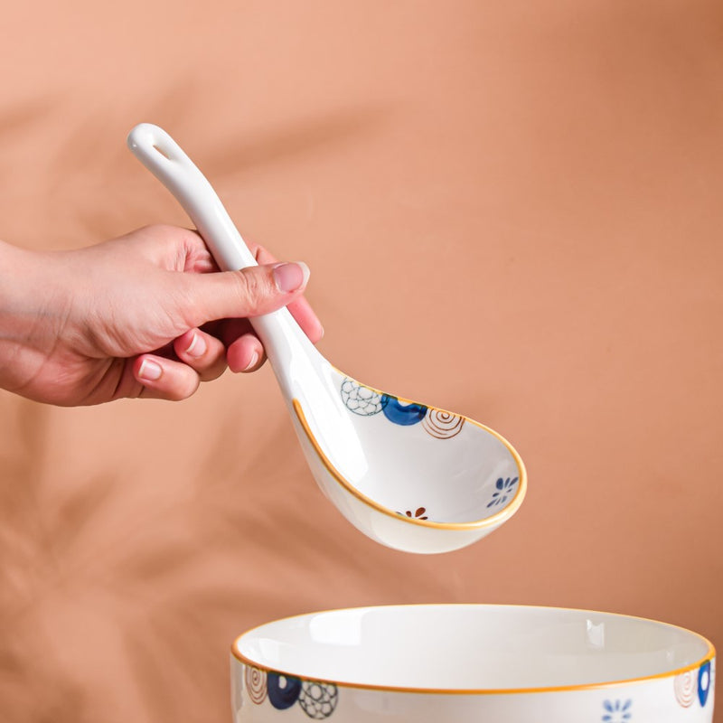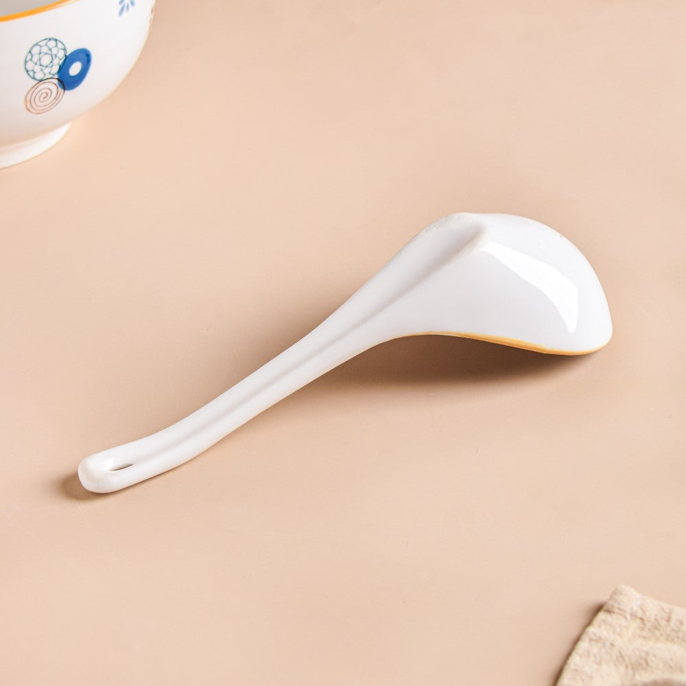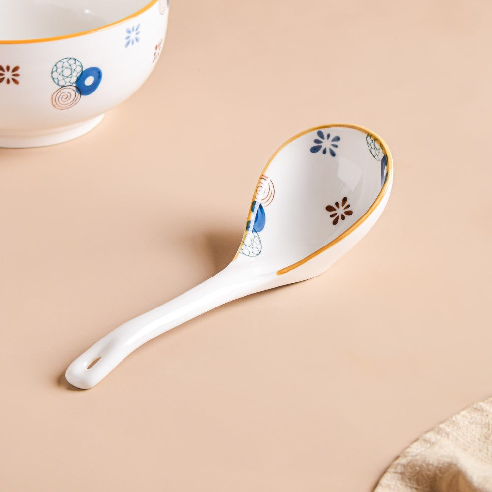 White serving spoons with a pop of color in the form of fun motifs are an elite yet fun addition to the tableware collection. Because of their neutral color, the white spoons stand out on any dinner or snack table and can be paired with anything. Serve hot soup and oatmeal to family and guests using the serving spoons and bowls from the collection. The ceramic serving spoon is perfect for use during a family get-together.