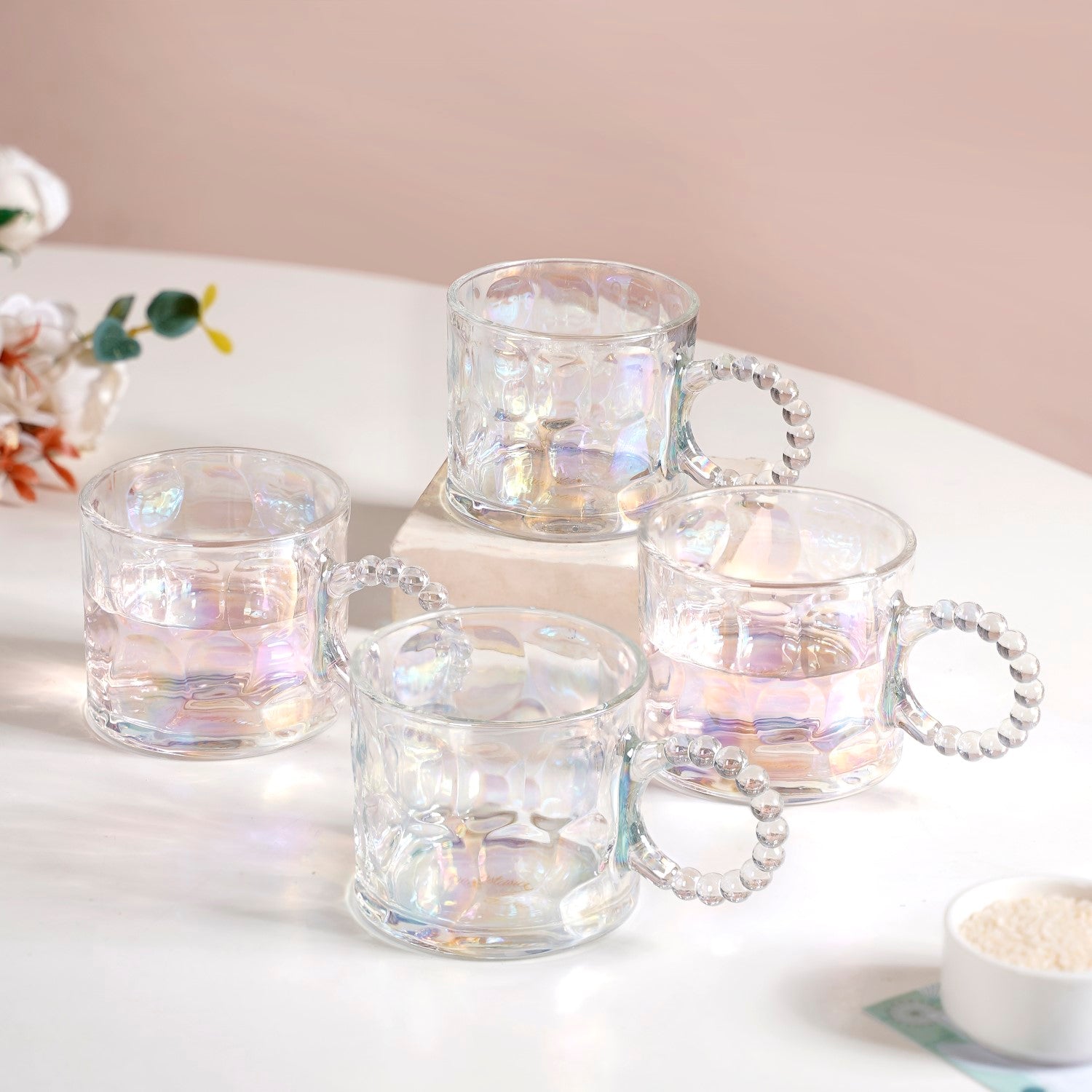 Set Of 4 Iridescent Glass Tea Cups 325ml |