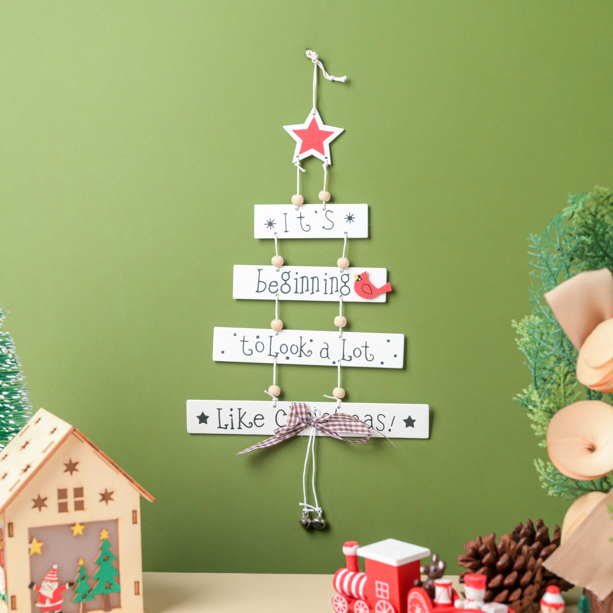 The red star Christmas wooden letter card is made of quality wood, is lightweight, and is easy to carry with classic designs for Christmas tree decorations. The Christmas hanging ornament that says- ' It's beginning to look a lot like Christmas! ' has a hole and string, so you can hang it anywhere. It is fast and easy to assemble and can be done without using tools. You can put the wooden hanging pendant on many items, such as Christmas trees, doors, windows, staircases, and fireplaces. It is suitable for holiday decorations, wedding favors, and other wooden art and craft projects.