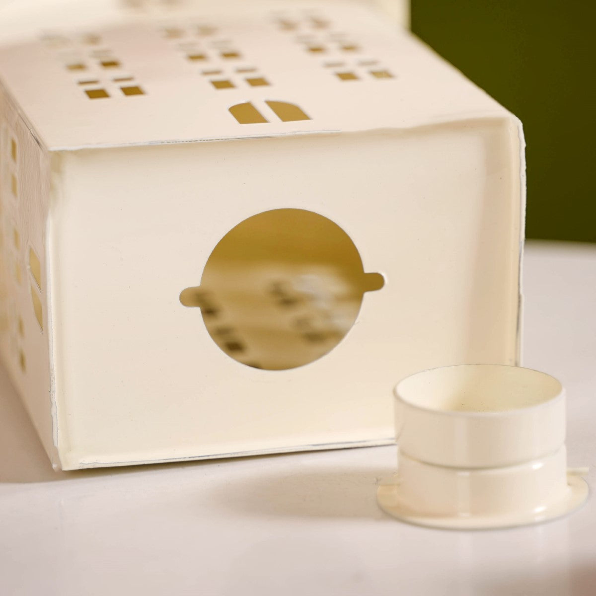 Absolutely, the unique house-shaped design and intricate cutwork make it an exquisite centerpiece. Its glossy finish and elegant structure add a touch of charm and warmth to any table or mantelpiece.