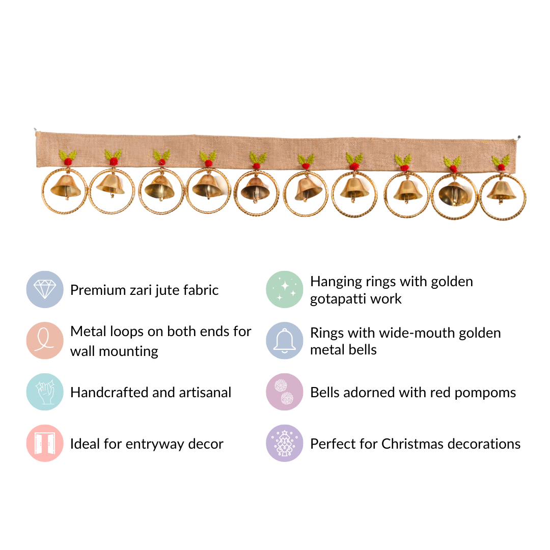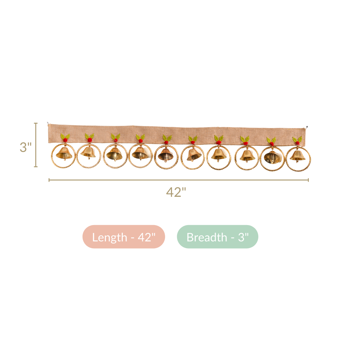 The zari jute fabric on the Christmas door hanging is carefully selected for durability. To maintain its quality and prevent fading, it is advisable to avoid prolonged exposure to direct sunlight, preserving the vibrant and charming appearance of the door hanging over time.