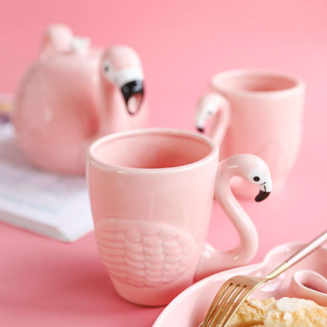 Let a flamingo tea help in the tea time serving and add brightness to the table setting. The flamingo teapot set is carefully crafted with a textured surface which will look delightful at tea time. It is definitely a must have for a quirky table top that will impress the all age groups and can be used for gifting. Tea cups not included.