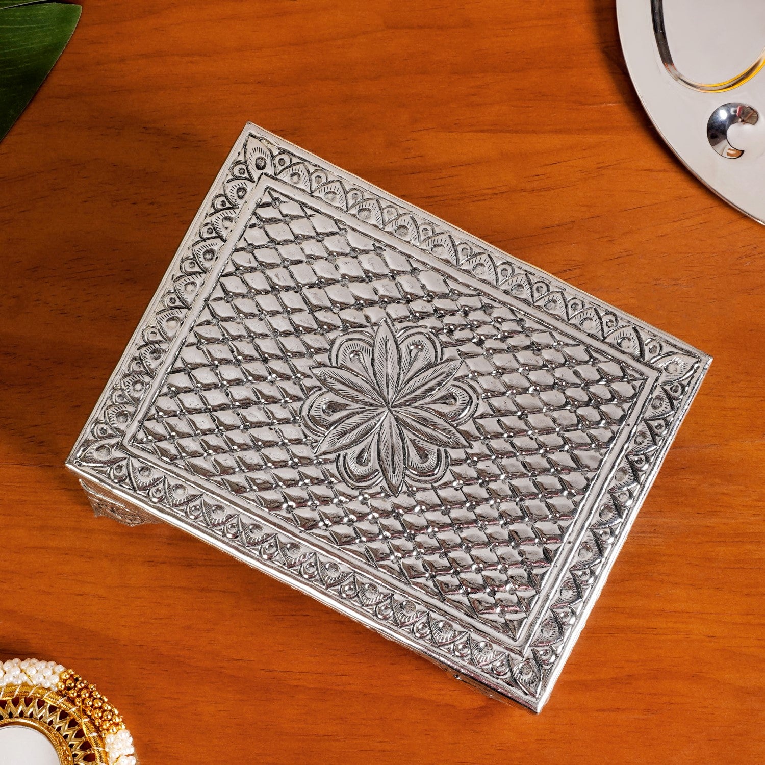 Flora Chowki Brass With Pure Silver Polish 20x15cm