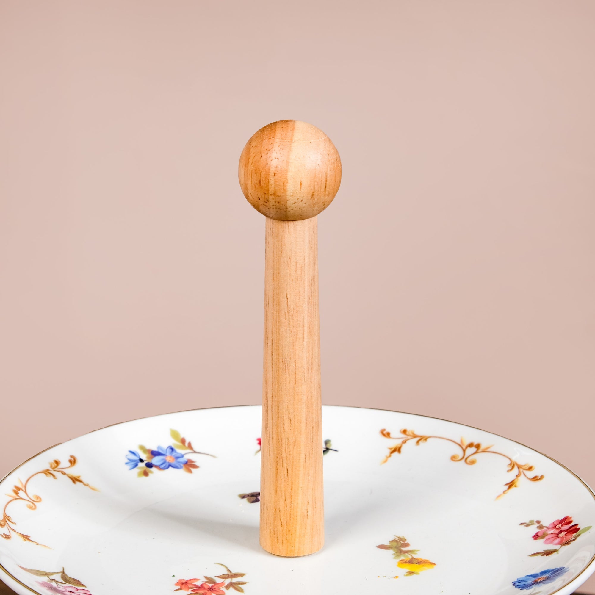 Design: This two-tier cupcake stand features round ceramic plates adorned with delicate floral designs, paired with a natural bamboo frame for a modern, elegant look. The vibrant floral patterns add charm and visual interest, while the tiered structure creates a beautiful display. The combination of ceramic and bamboo brings a handcrafted, sophisticated touch to any table.