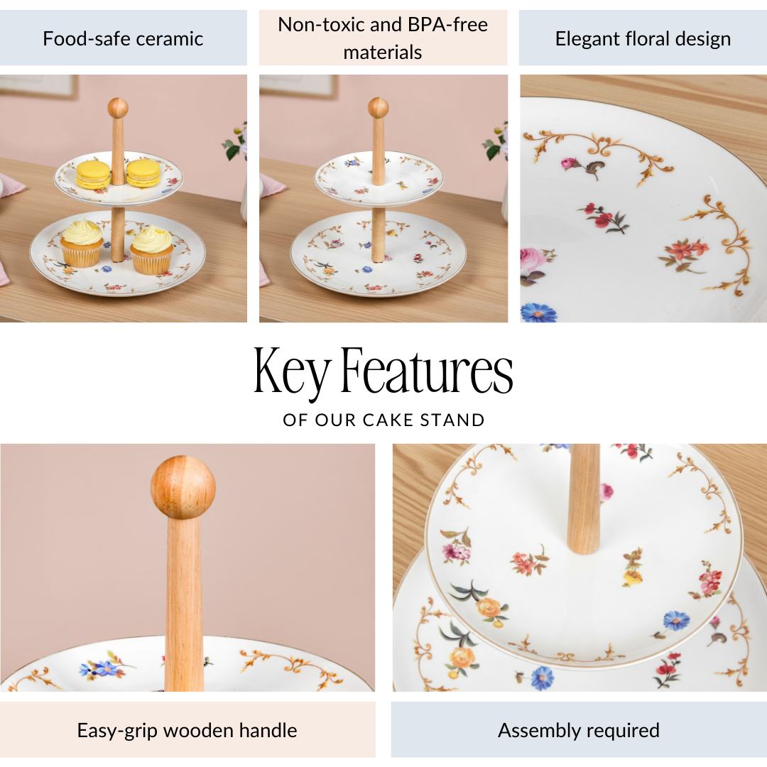 Benefits: Perfect for serving pasteries, cupcakes, or appetisers, this round two-tier stand blends beauty and functionality. The sturdy bamboo frame ensures stability, while the floral ceramic plates are durable and easy to clean. Ideal for parties, gifting, or festive decor, it adds charm and becomes a delightful centrepiece for any celebration.
