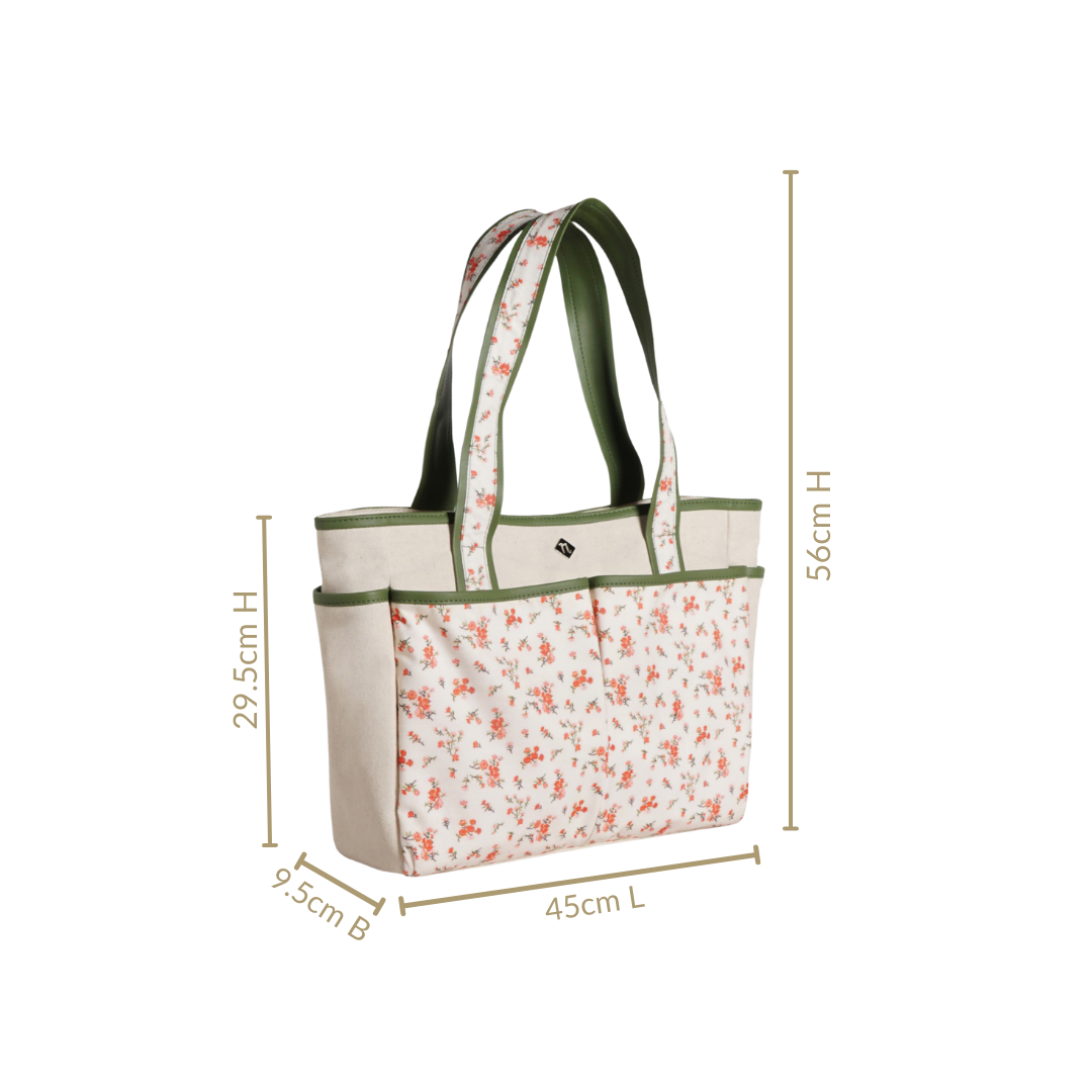 This floral canvas tote bag keeps daily carry organised with lightweight strength. An everyday tote bag designed for work, shopping and errands without fuss.