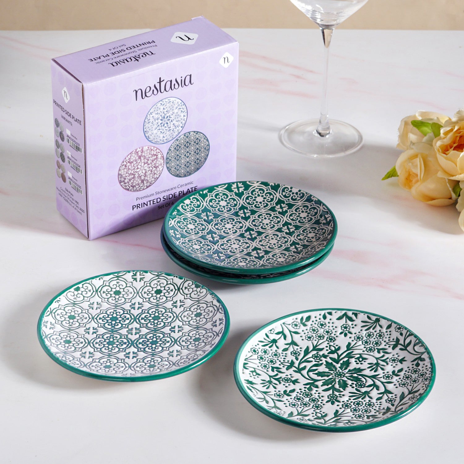 Benefits: Crafted from sturdy stoneware ceramic, these plates promise durability and effortless upkeep. Their size makes them suitable for small servings, desserts, or snacks, adding versatility to your tableware. The cool teal and white palette complements a wide range of table settings, from casual meals to festive gatherings.