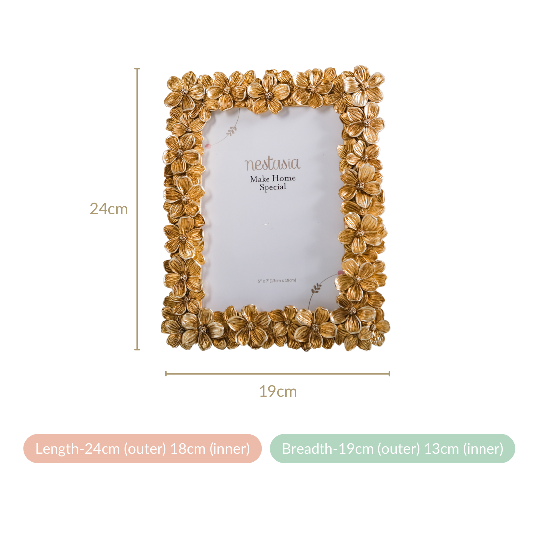 Elevate your living space's aesthetics with our exquisite large table photo frame. Meticulously crafted in a sleek rectangular design, it seamlessly blends elegance and charm. What truly distinguishes it is the intricate 3D blooming flowers, delicately enhancing your cherished memories with a touch of natural beauty. Each flower is meticulously detailed, creating a captivating visual spectacle. Whether showcasing a family portrait, a scenic landscape, or a cherished moment, this photo frame effortlessly transforms any table into a mesmerizing centrepiece.