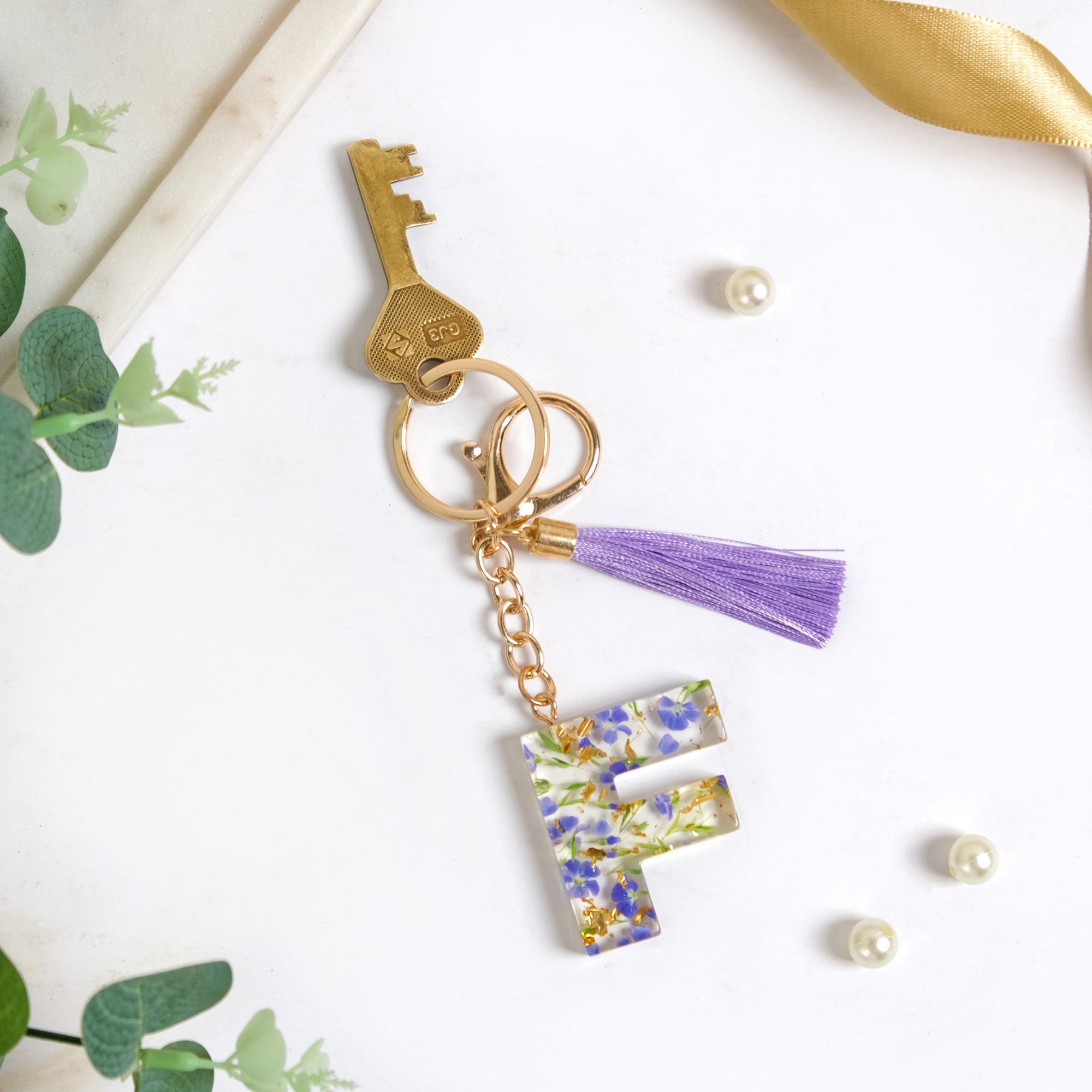 Infuse charm and utility into your everyday essentials with the chic “F” resin keyring. This cute keychain features pressed lavender forget-me-not flowers, or scorpion grass, known for their symbolic association with love and cherished memories. The entire design is encased in stunning transparent high-quality resin shaped like the English alphabet "F".