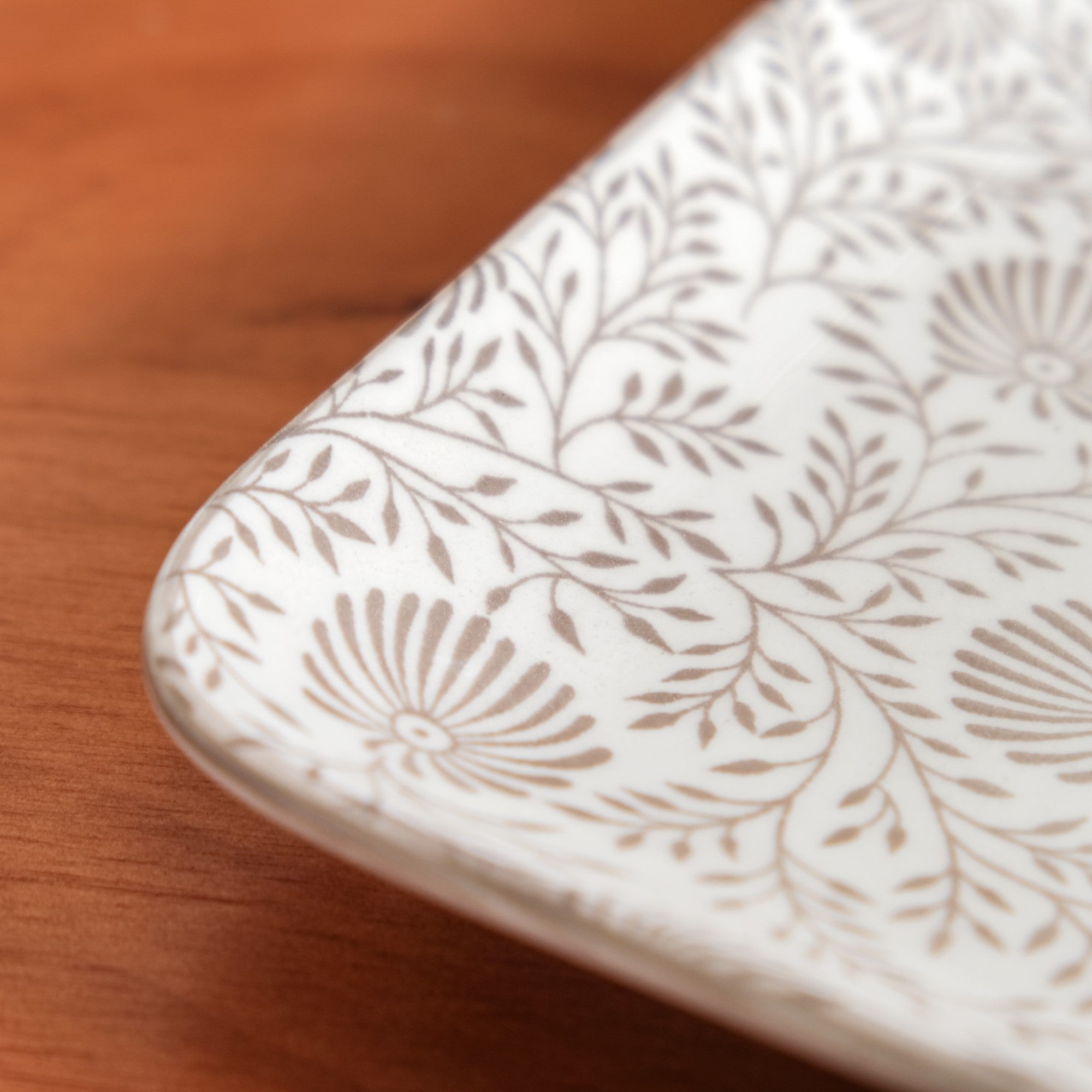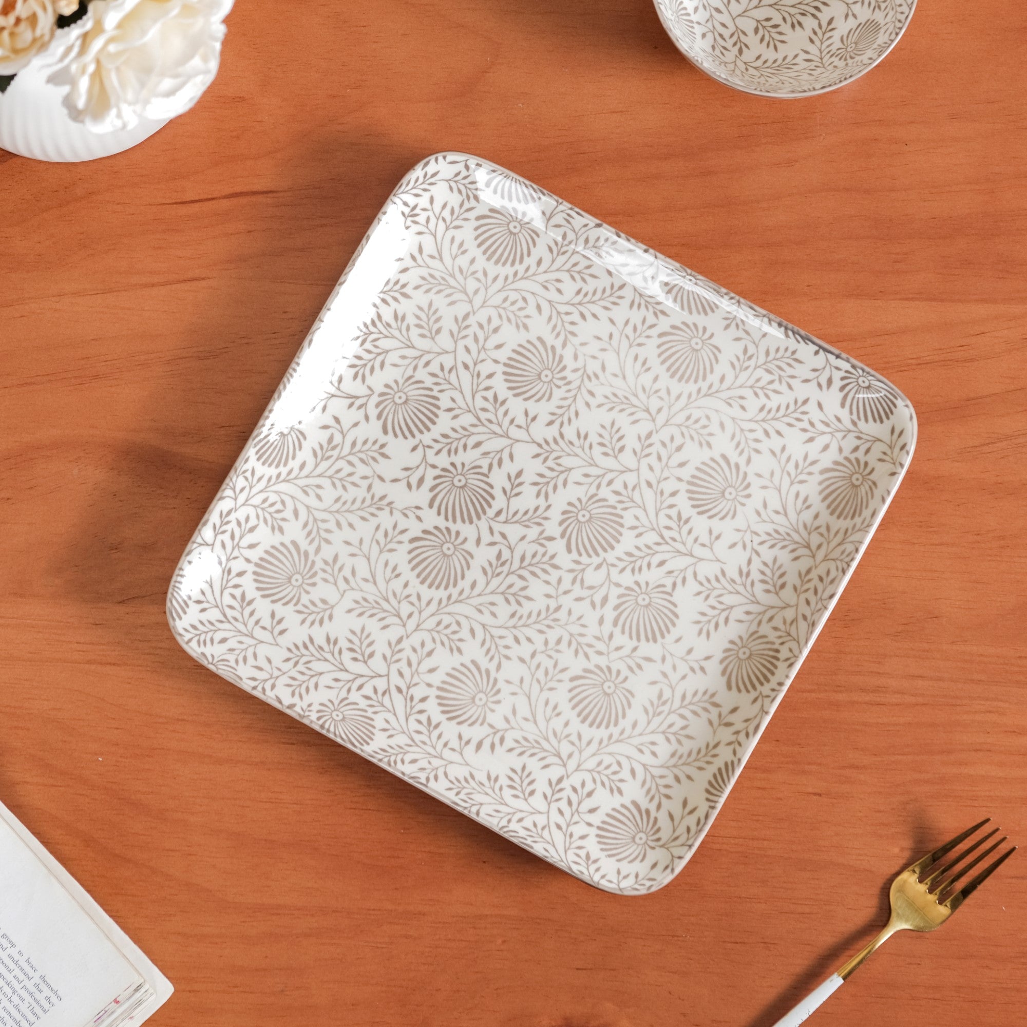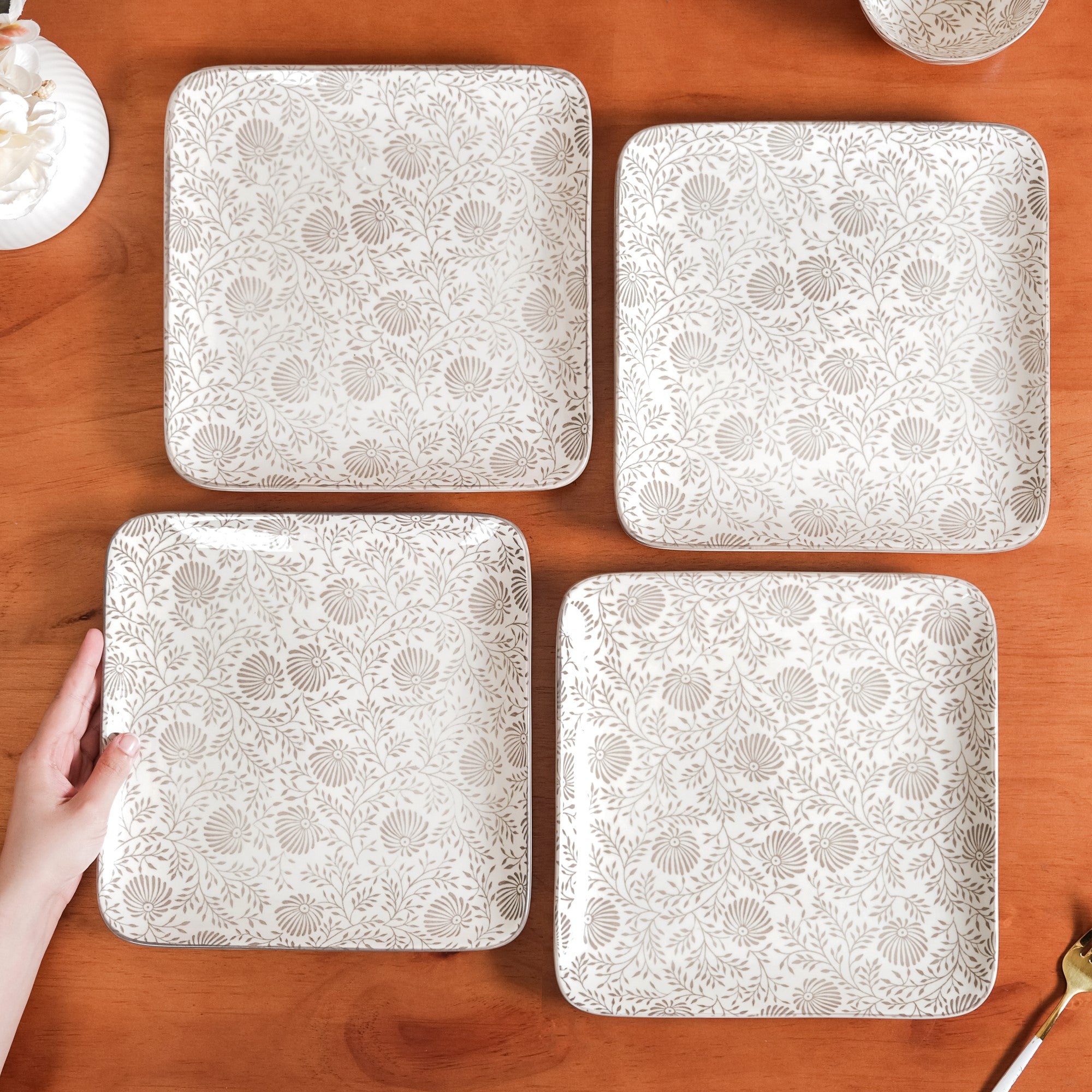 Design: Crafted from premium-grade, non-porous ceramic, the set of 4 plates boasts elegant beige floral patterns against a classy white backdrop. The hand-glazed surfaces uphold a charming rustic aesthetic, while the unique square shapes make these dinner plates a great addition to your dinnerware collection.