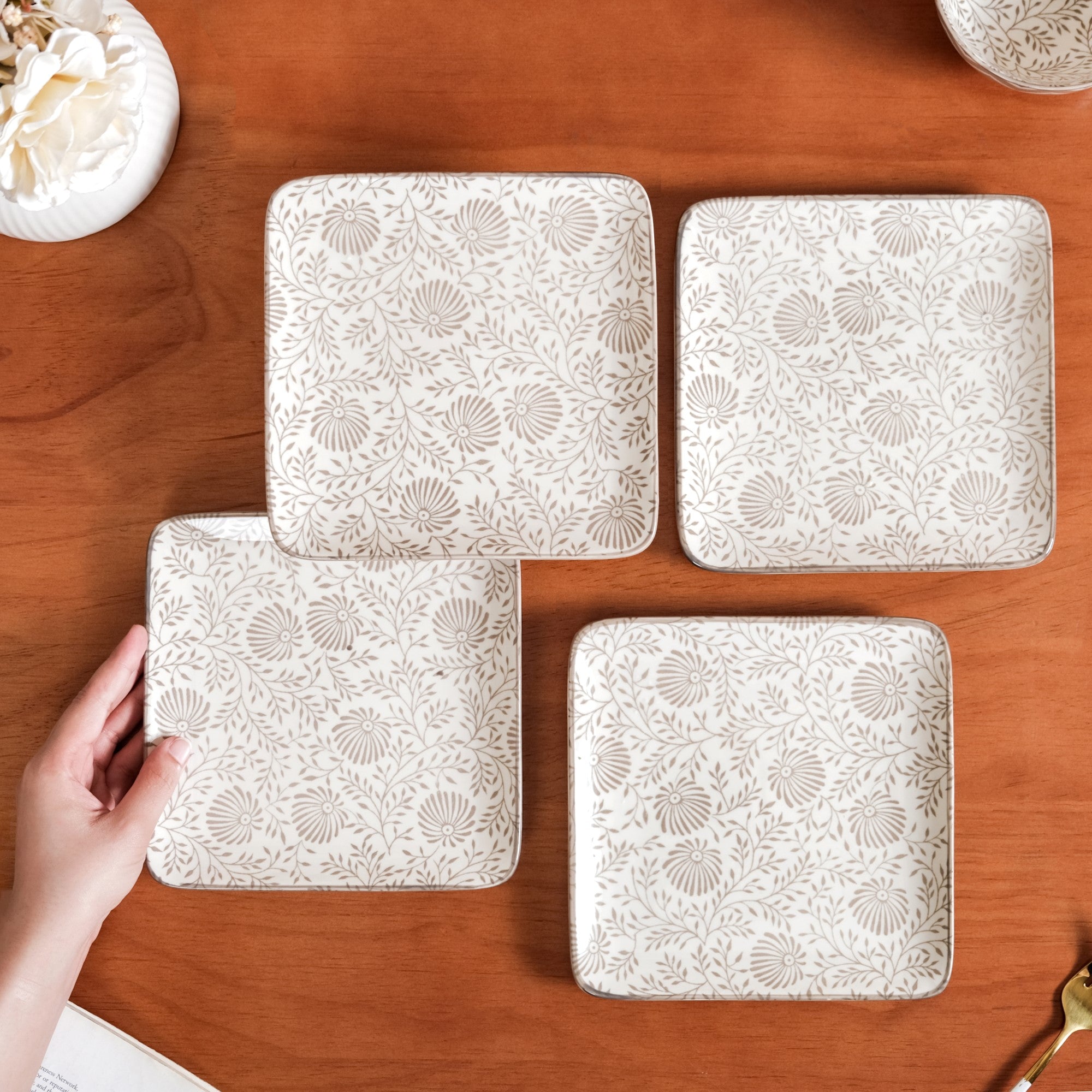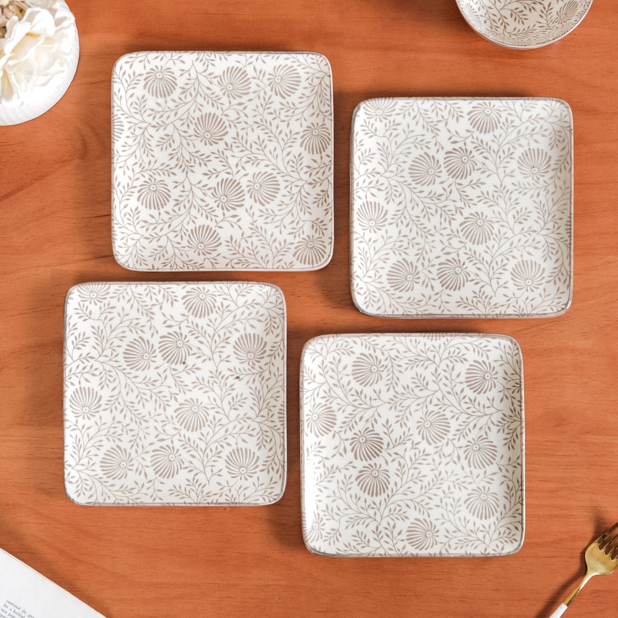 Design: Crafted expertly from premium-quality non-porous ceramic, the set of 4 plates will certainly surpass your expectations in terms of aesthetics and functionality. Bearing playful floral prints, the ceramic plates can be used to present all your favourite snacks.