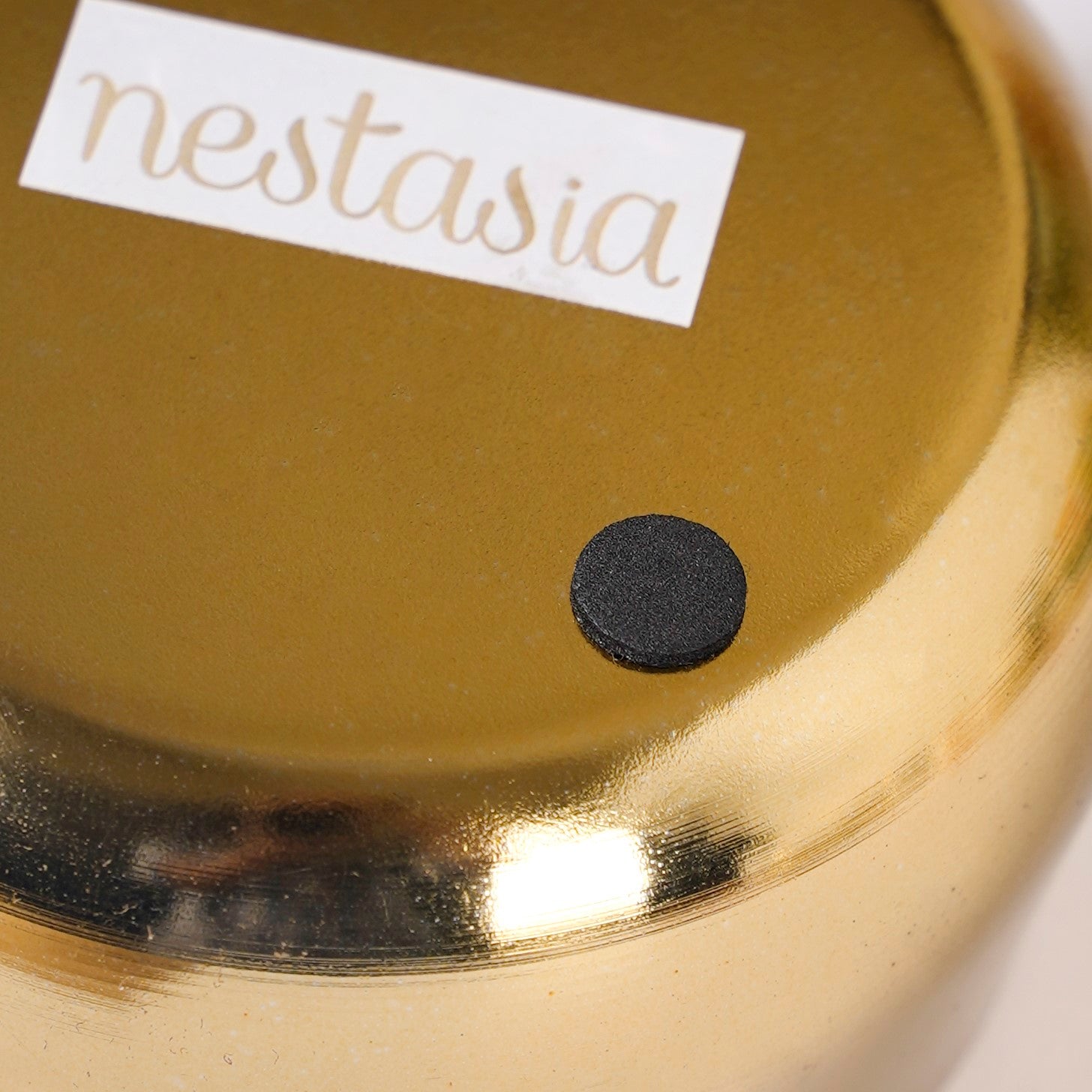 Once the candles are used up, you can clean the galvanised iron bowls with a soft cloth and mild soap. Avoid using abrasive cleaners that might damage the high-sheen gold-plated finish. Ensure the bowls are completely dry before storing or reusing them.