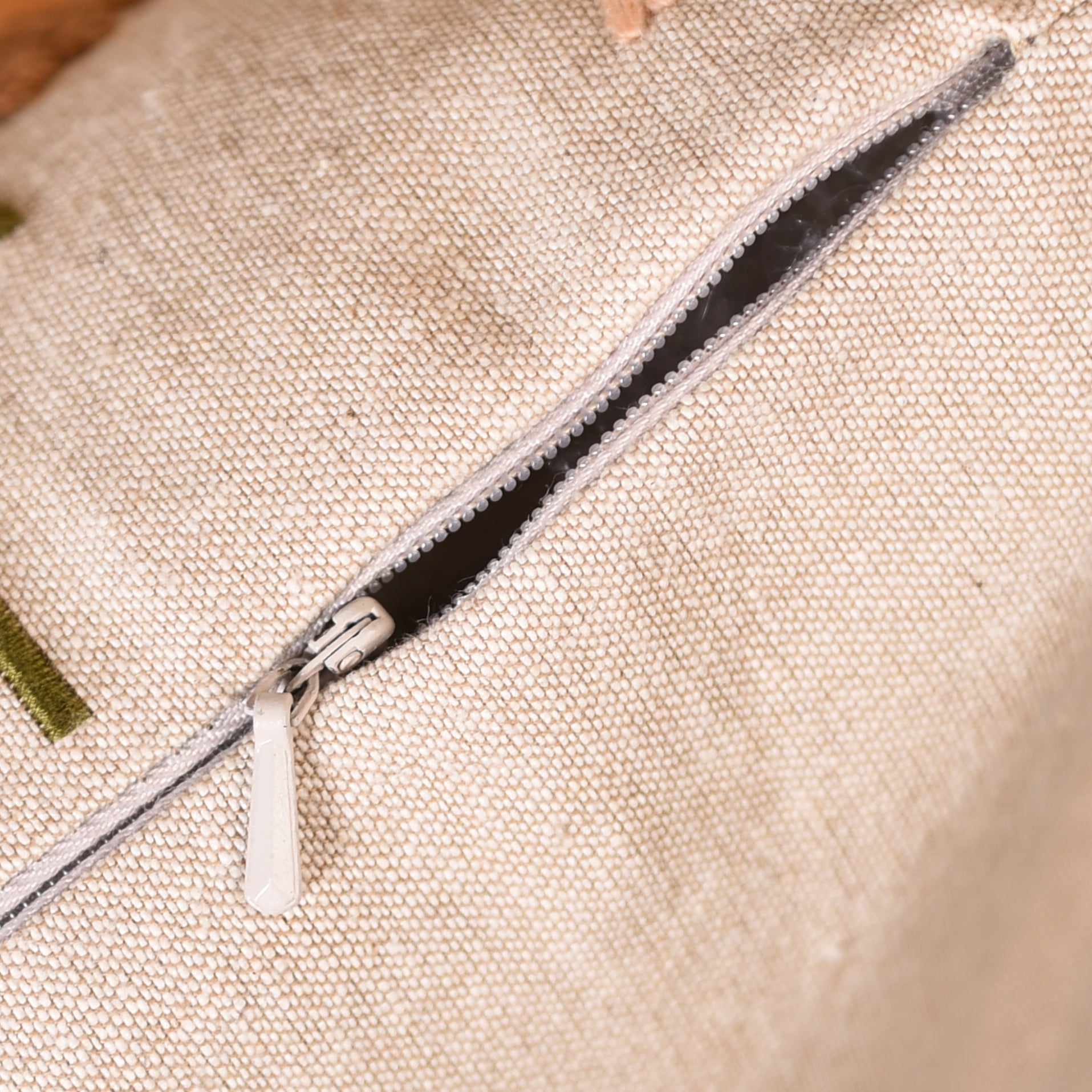 Design: Intricately embroidered with lily and daisy flowers in white and ochre, this sofa cushion cover adds a graceful botanical charm to your decor. The embroidered green leaves enhance the floral design, creating a harmonious blend of nature-inspired hues. A smooth concealed zipper at the bottom ensures a seamless finish while making it easy to insert or remove the cushion.