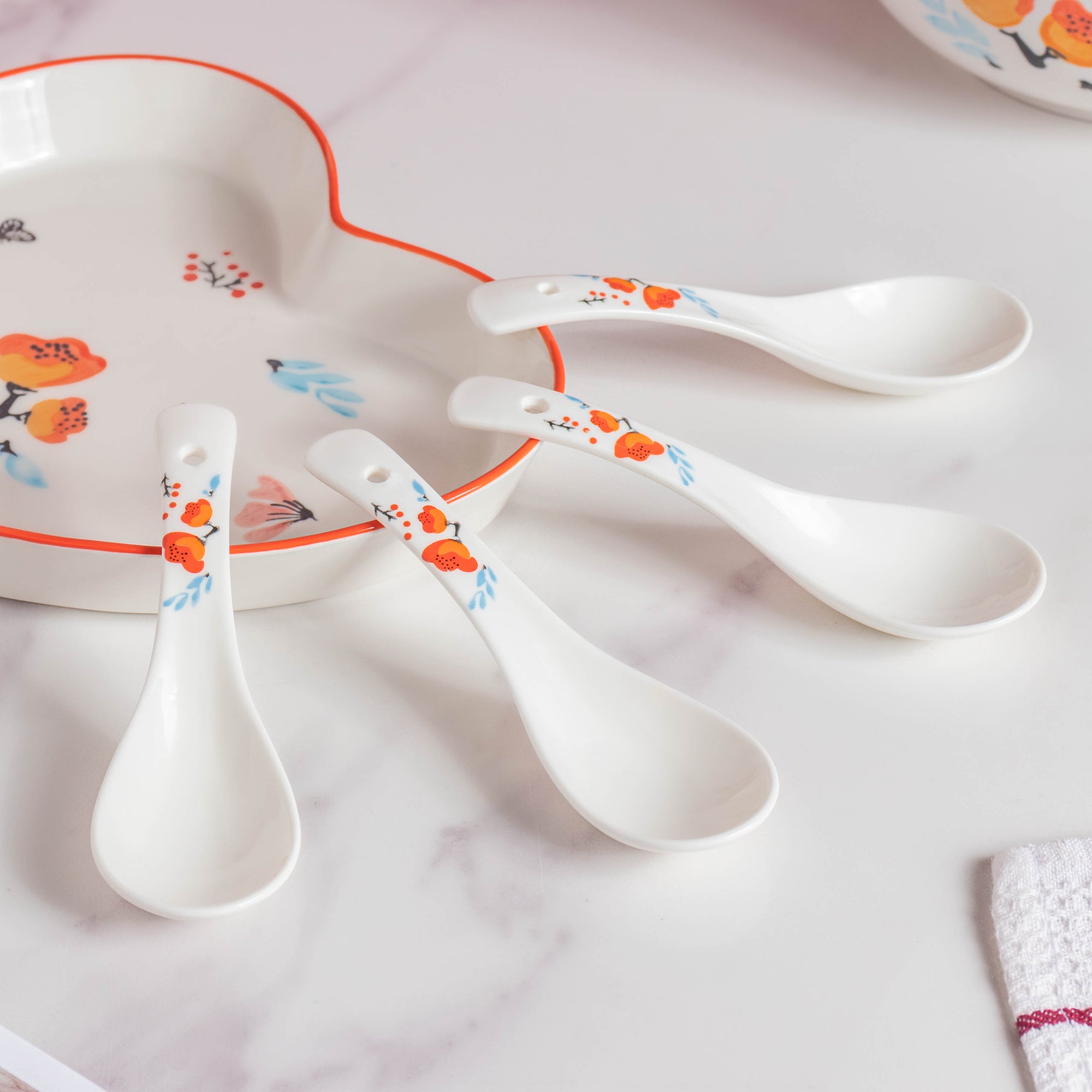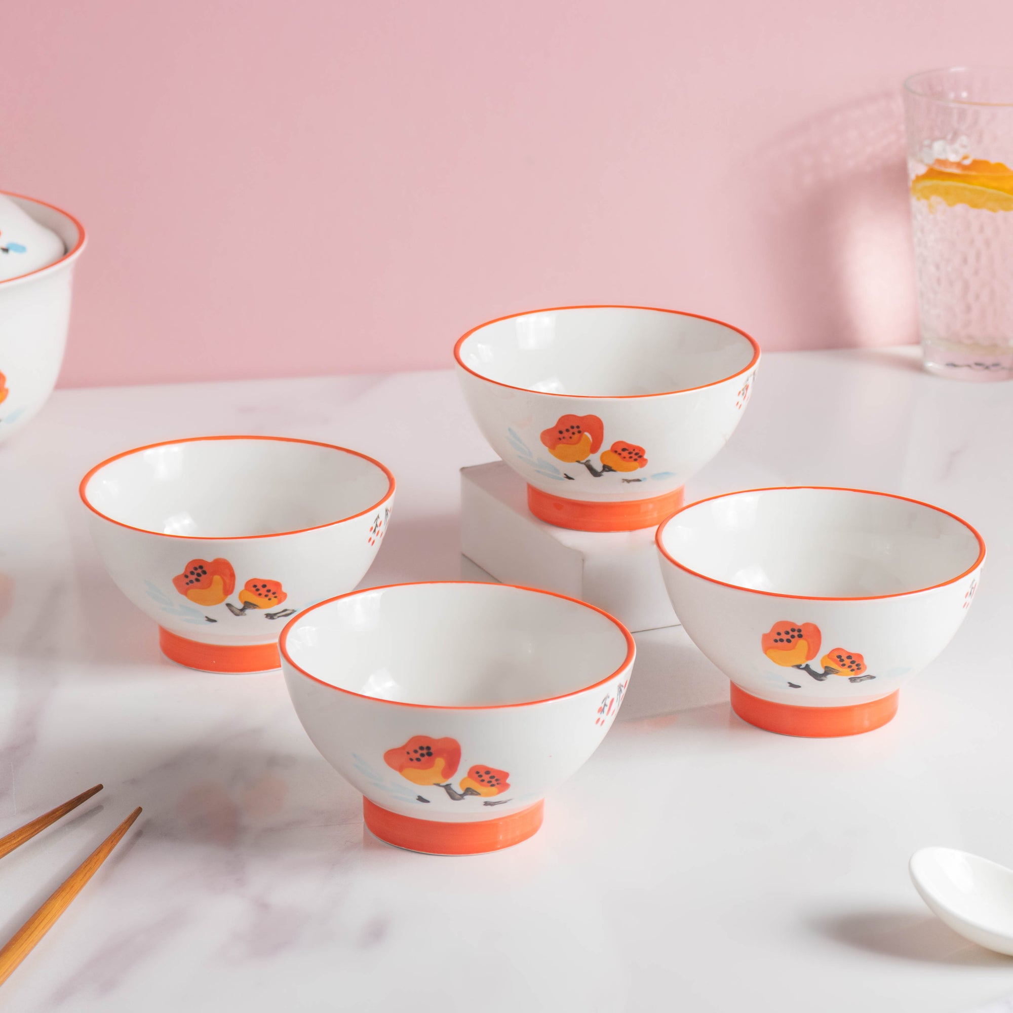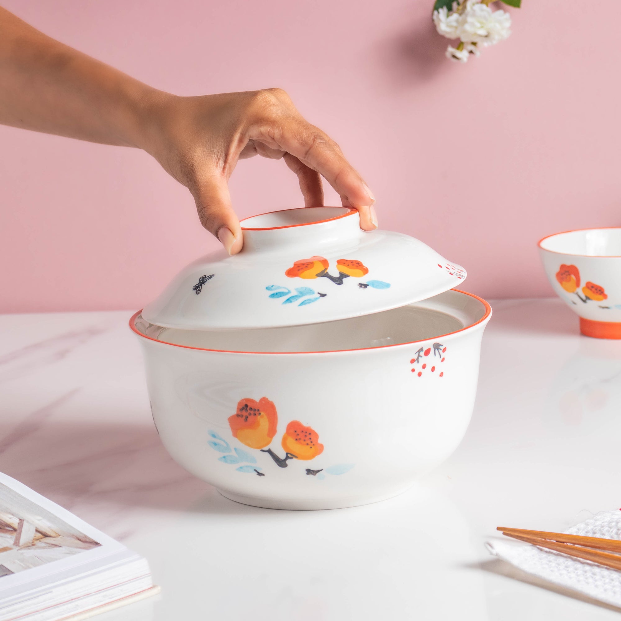 Adding some quirk to the table can become hard, one doesn't want to come off as overbearing. The perfect and easiest way is to get a set that is minimal while also being unique and colorful. The thirteen-piece set is exactly that, with minimal floral prints on a pristine white backdrop. The ceramic set has four heart plates, a pot with a lid, four bowls, four soup spoons, and four pairs of chopsticks. Dim sums can be served on the heart-shaped plates, while soups and dips can be served in the little bowls. The plates can be used separately or in a creative way to serve snacks, fruits, and other items. The plates also offer a splash of color to the table, making it appear more trendy and appealing. Nestip: The pot with lid in the ceramic set can be used as a serving bowl separately. Color: White and redCapacity:Serving Bowl: 1200mlSmall Bowl: 300 ml Material: Ceramic Style: B17MA21B251