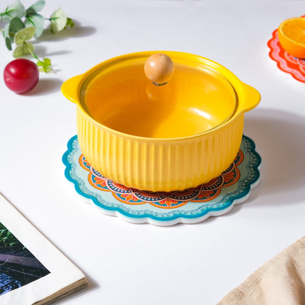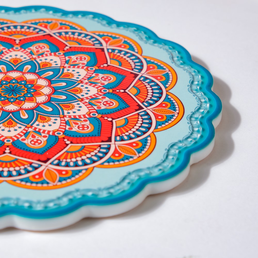 The traditional Moroccan tile pattern and Persian style art are well-known throughout the world. They can be called the “world’s eighth wonder” for their intricacy, vibrant hues, and harmonious blend of mandalas. Our collection of ceramic coaster/trivet is a gateway to incorporate this eighth wonder into your living room, dining table or as a beautiful decor piece. While the trivets are the quintessential companion of your ceramic, earthen, copper, clay, glass pots, hotpots, pans, bowls and plates, other cookware, the coasters can be the new best friends of serveware, wine glasses, cocktail glasses, and glass coffee mugs or cups.