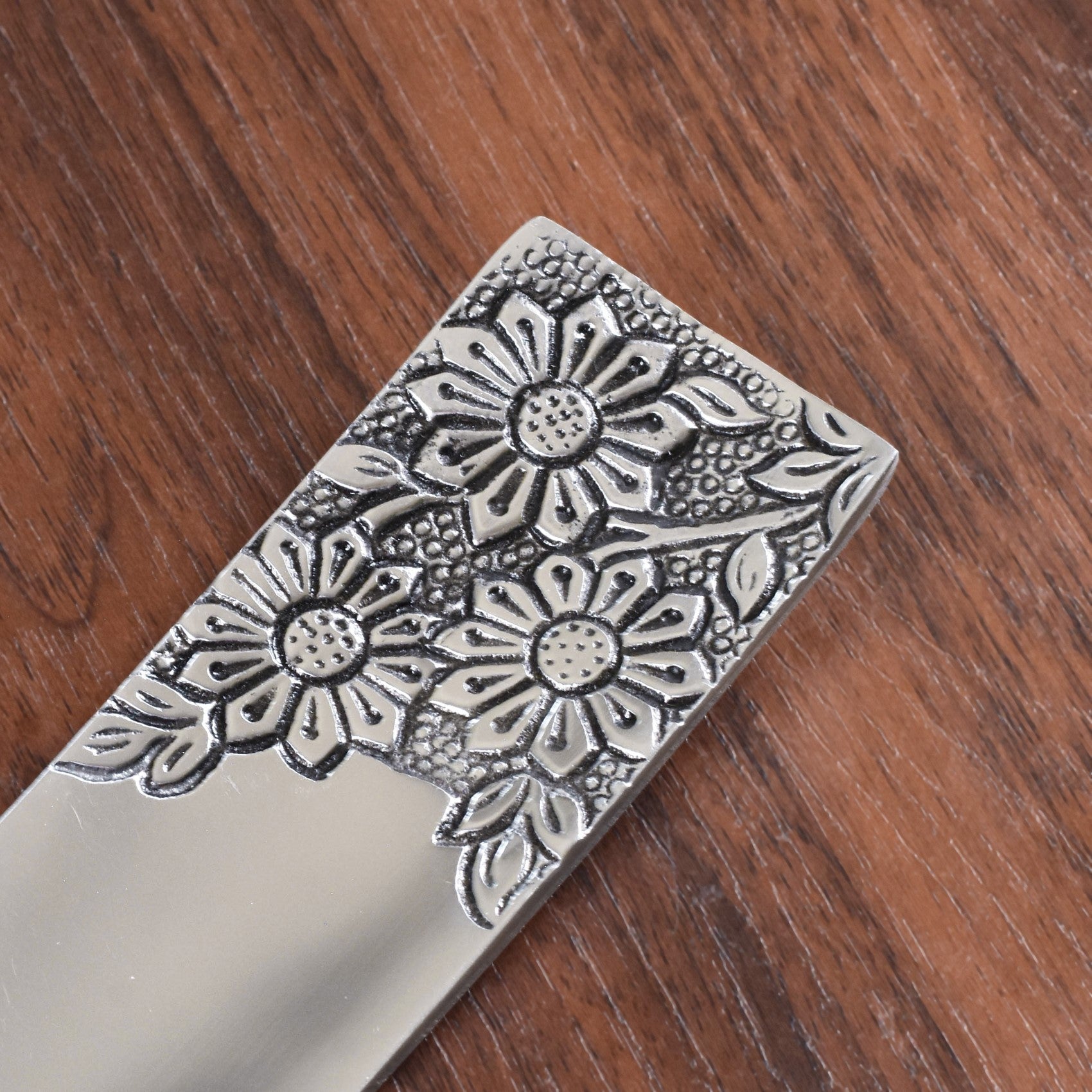 Indulge in the timeless allure of our incense holder, meticulously crafted from premium-quality aluminium to exude durability and sophistication. This metal stand features a sleek rectangular shape that lends a modern twist to traditional aesthetics, while its intricate floral textured design adds elegance. With an antique finish that radiates vintage charm, this agarbatti stand seamlessly blends into any decor scheme with its versatile appeal. Designed to withstand the test of time, its rust-resistant and durable construction ensures years of enriching your space with the soothing aroma of incense. Elevate your ambience with our aluminium ash catcher, a perfect fusion of style and functionality. The incense holder comes with a box of jasmine-scented organic incense sticks.