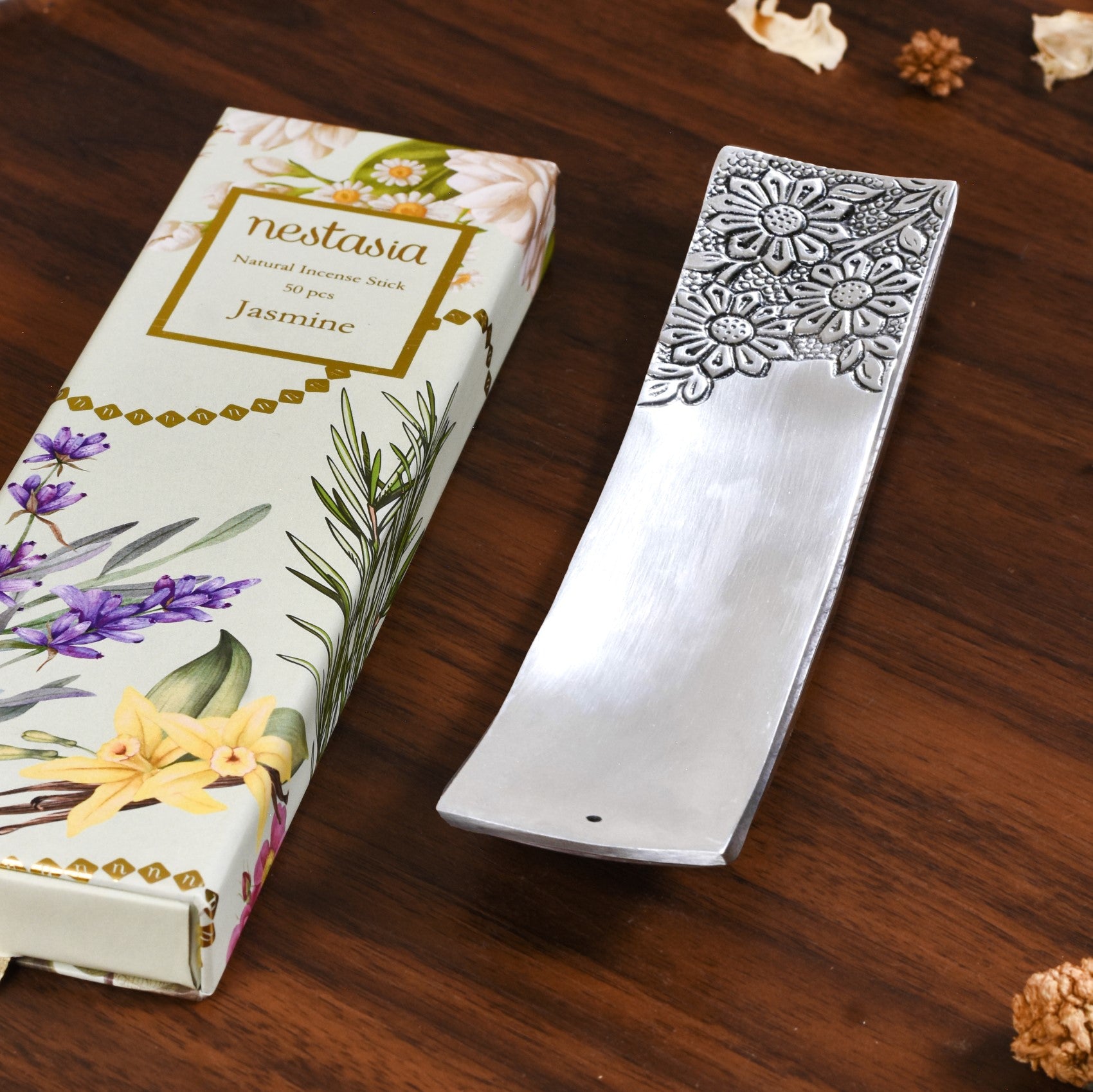 Floral Metal Incense Holder With Jasmine Incense Sticks Gift box