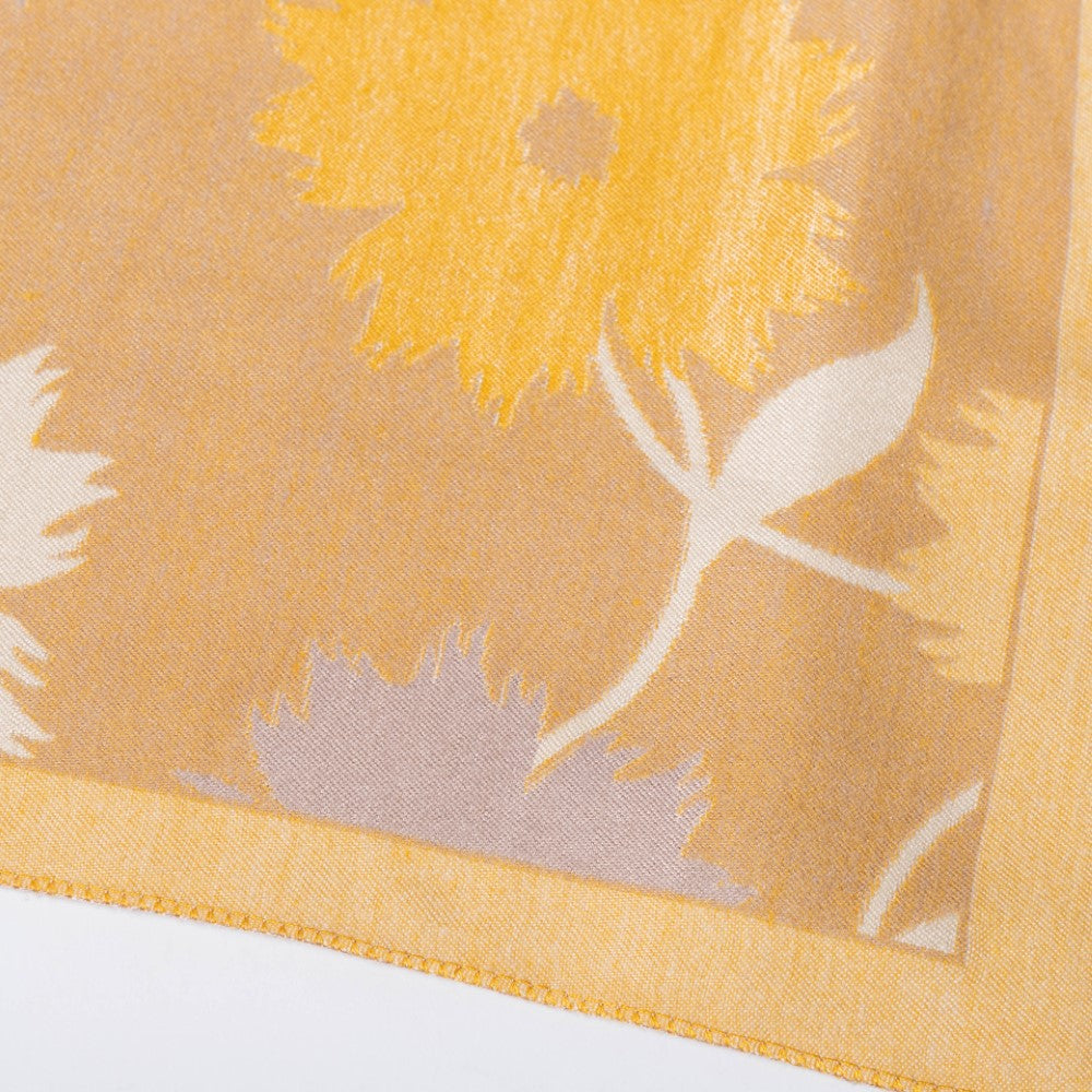Floral prints can never go out of style, making the blanket scarf a trendy and fashionable winterwear piece. The winter scarf features yellow and grey floral patterns with a solid-coloured border design. The reversible design of the ladies' scarf also allows one to create new and fashionable looks by pairing the polyester scarf with winterwear essentials of different colours, including black, white, and grey.