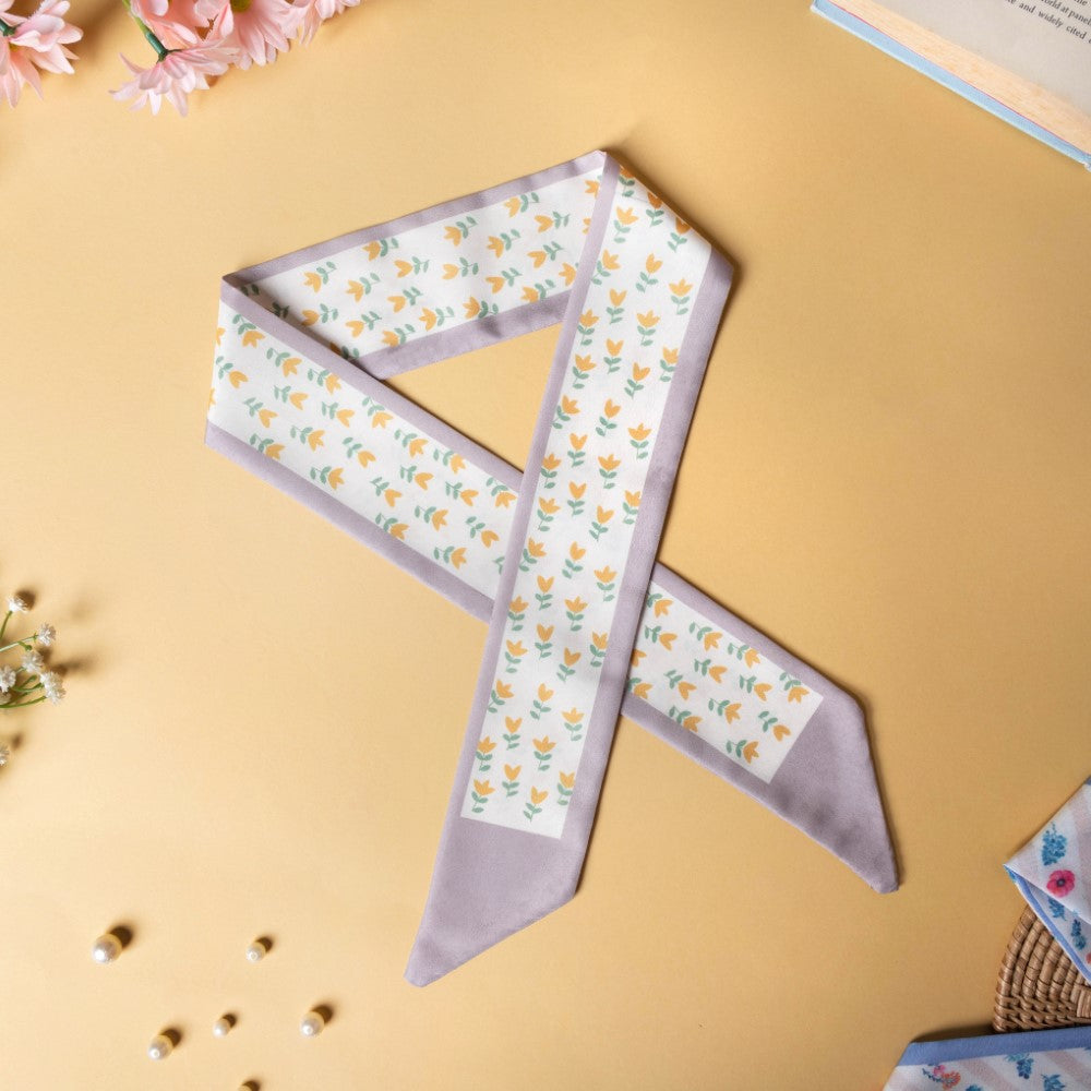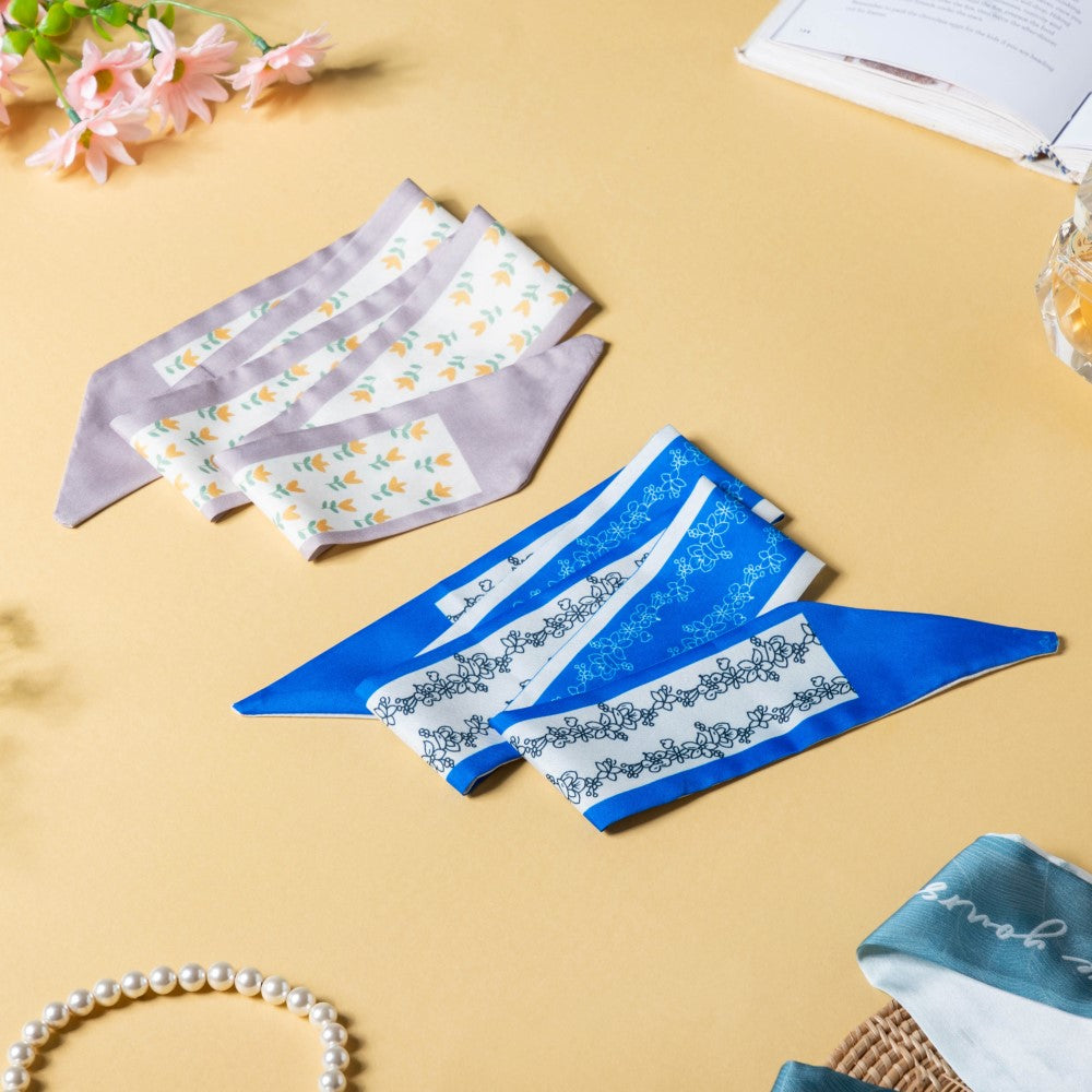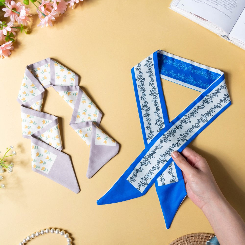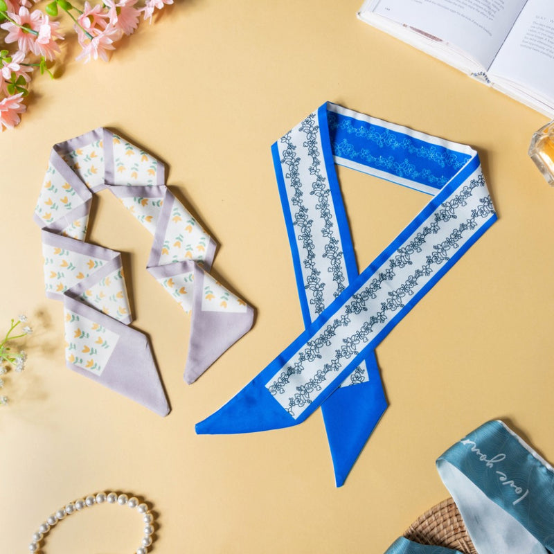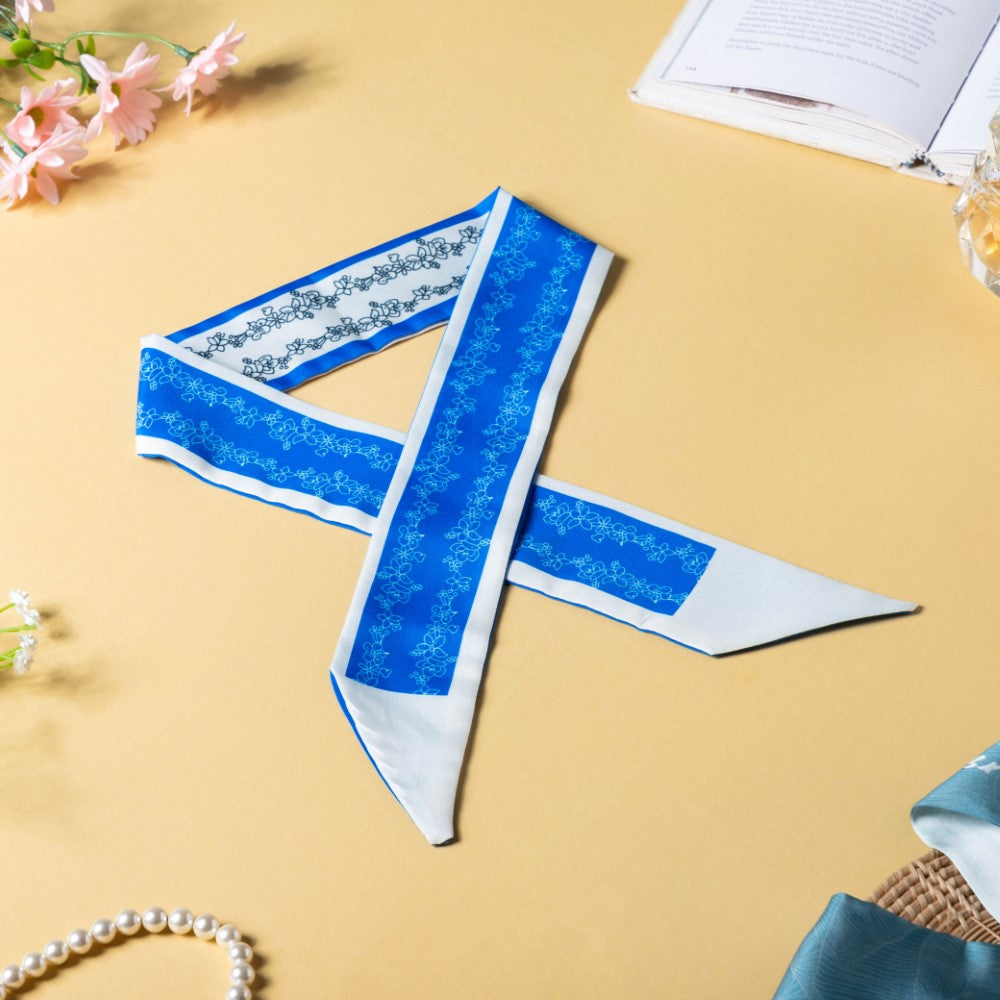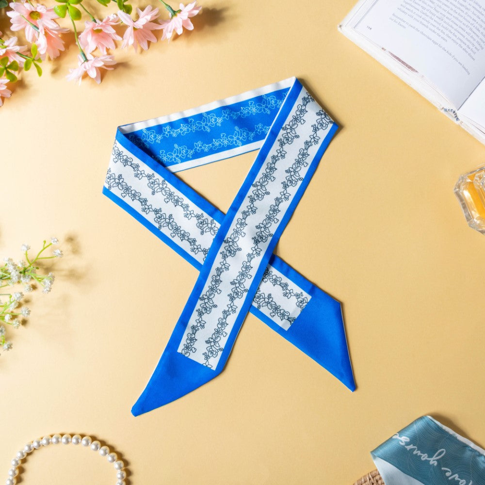 The satin skinny scarves are adorned with a soothing combination of white and blue and a print of beautifully blooming flowers, which would perfectly grace your hair. The scarves can be used as a versatile hair accessory, a hair band, a ribbon for braiding, or a neckband and an accessory for a handbag. The smooth satin will protect your hair from breakage and beautify your hair with any of the styles you go for. The floral patterned twilly scarves can be the best birthday gift for anyone who's a fashion inspiration to you.
