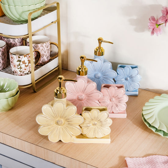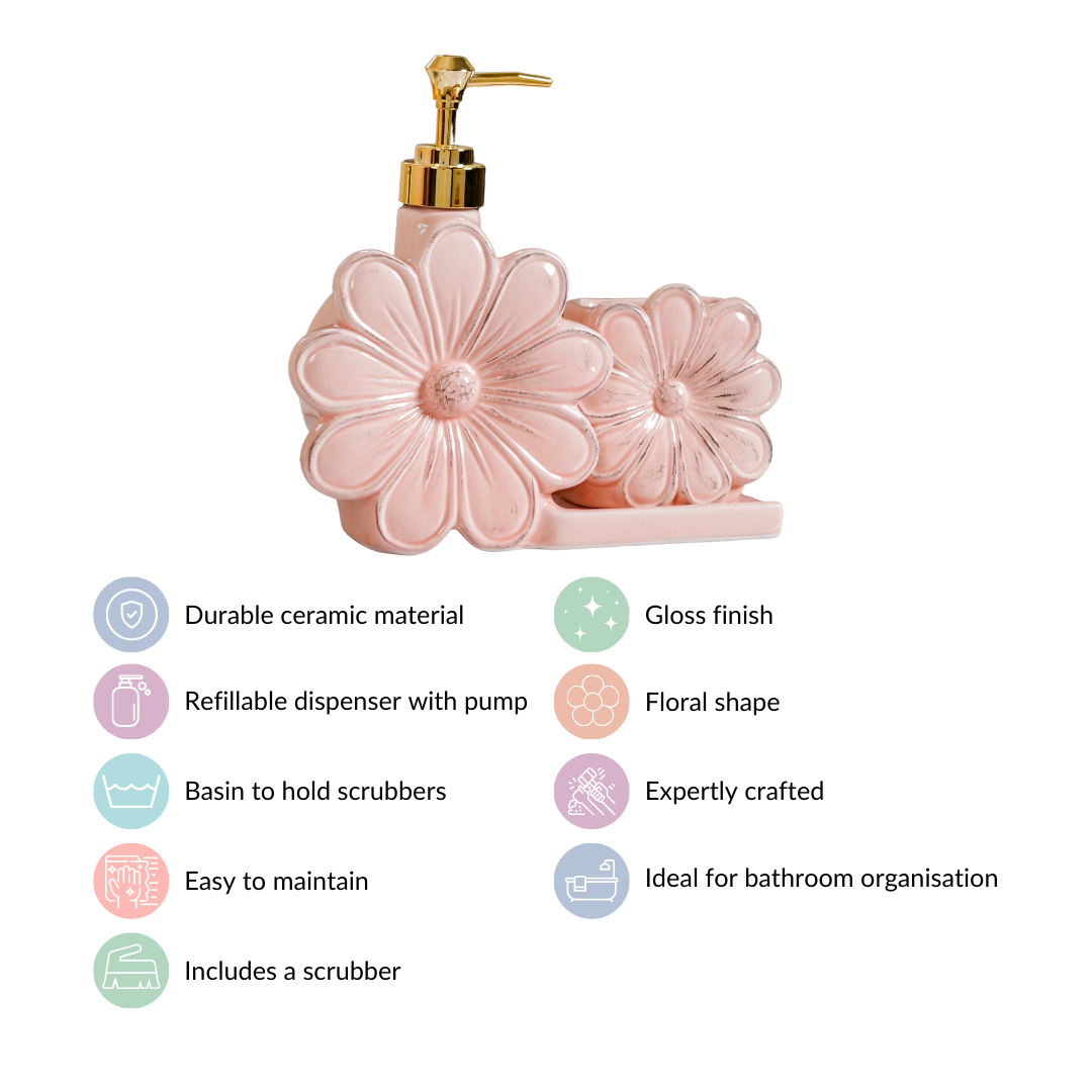 Absolutely! Our soap dispenser is versatile and can be used beyond the confines of the bathroom. The durable ceramic material, coupled with the refillable dispenser and pump, makes it suitable for various spaces, including the kitchen. The smooth gloss finish ensures effortless cleaning, maintaining its pristine appearance. The thoughtful addition of a basin to hold scrubbers adds to its functionality.