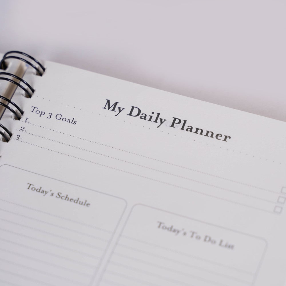 The beautiful and functional set of 1 notebook planner and 1 notepad, is designed to help you stay organized and inspired. Whether you're a student, a working professional, or a busy homemaker, this set is perfect for anyone who wants to keep their life on track. The notebook planner is specially designed with several sections to help you keep track of your daily tasks, appointments, and personal goals. The planner and notepad are spiral-bound, making it easy to flip through pages and fold back when you want to write on a flat surface. The notebook has pages for notes, important calls & emails, and divided sections to sort out your meals and exercise routine, as well as the extra time left. The opposite page has the following sections - top 3 goals, today's schedule and today's to-do list. This layout is perfect for prioritizing your daily tasks and goals. You can easily list your most important tasks and appointments for the day, and check them off as you complete them.