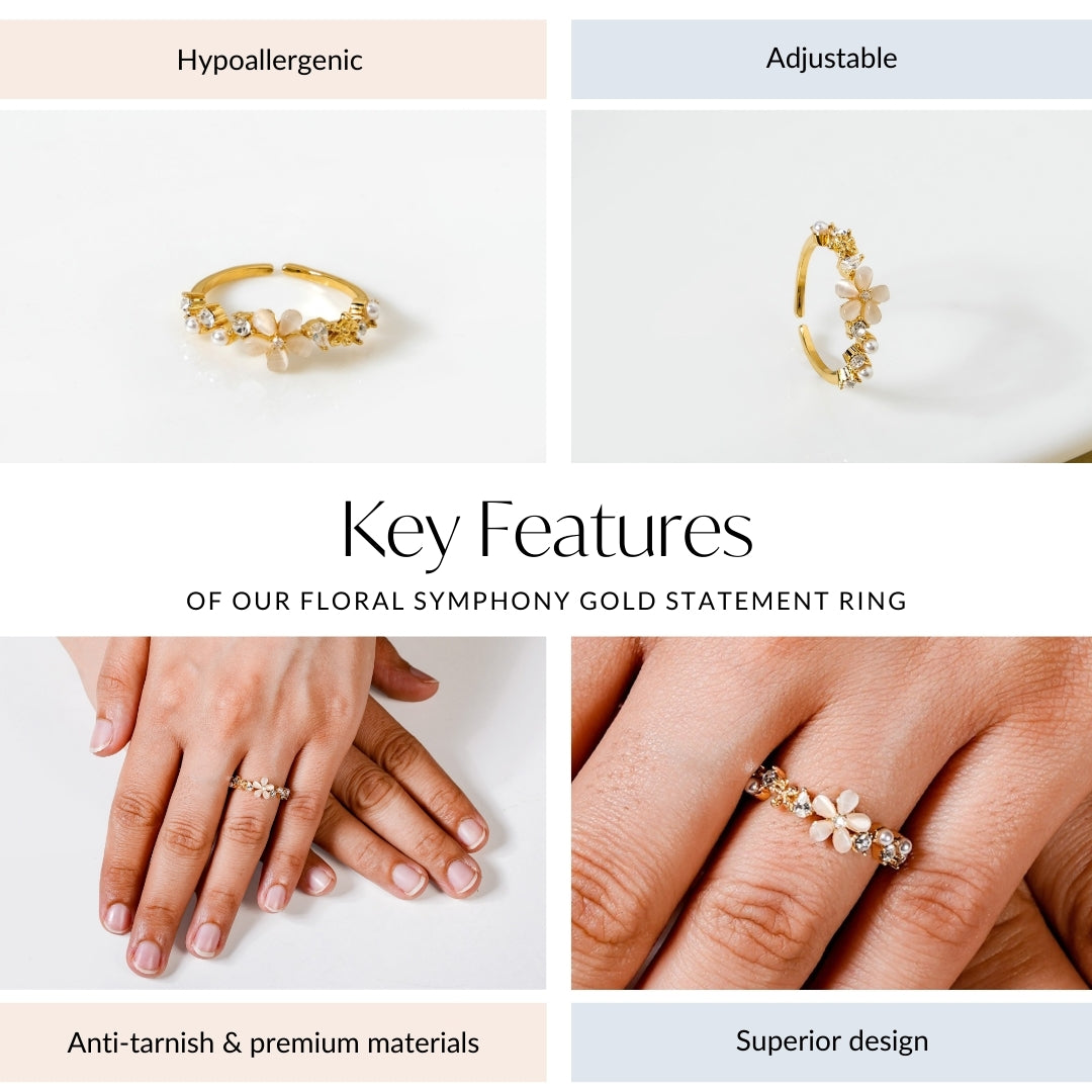 Nestyle: To showcase this enchanting gold-toned ring, consider creating a soft, romantic look that complements its charm. Pair the ring with a flowy, pastel-coloured dress that enhances the delicate nature of the piece.