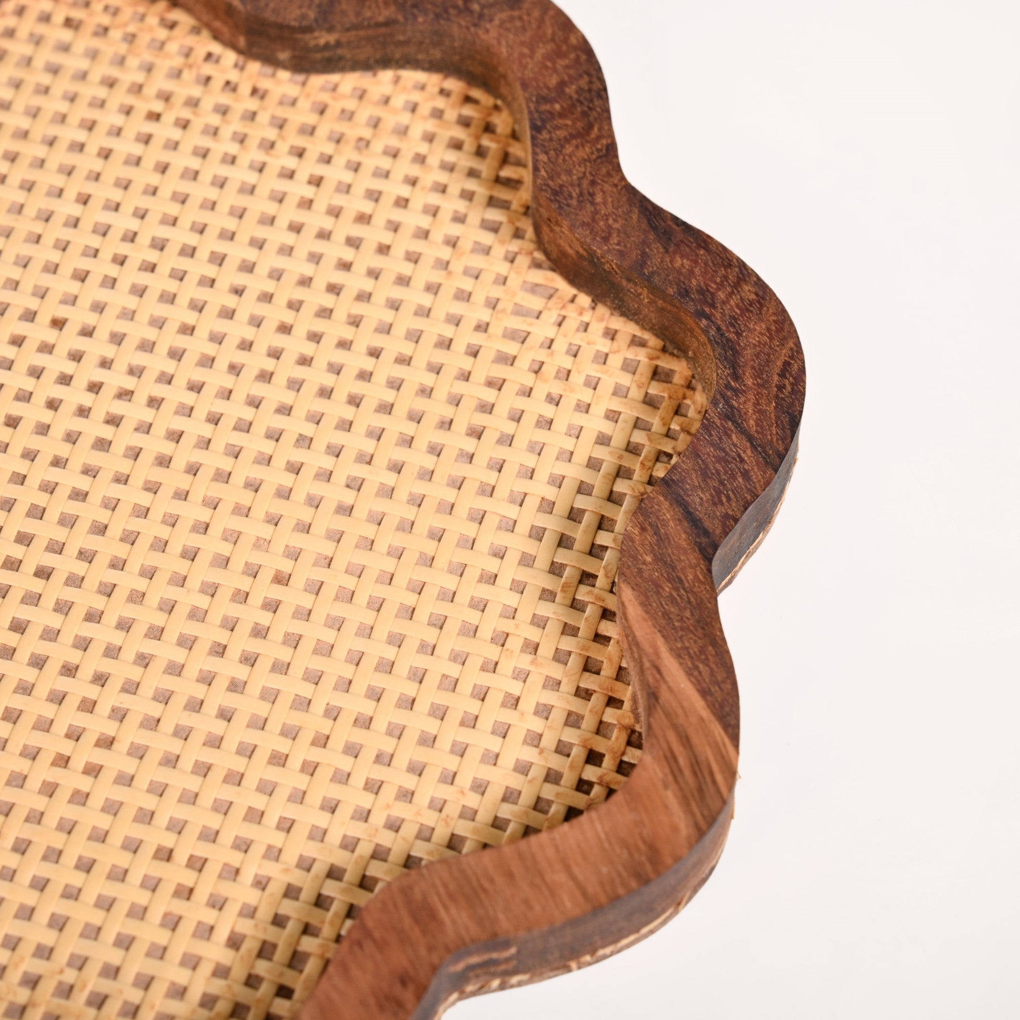 Design: Elegant, chic, and effortlessly timeless, this wooden serving platter set brings together the natural beauty of acacia wood with a modern touch. Shaped like a delicate flower, each platter showcases the beauty of acacia wood through its rich hues and grain patterns, adding character and depth. The woven rattan surface adds an earthy, farmhouse charm that blends seamlessly with contemporary style.