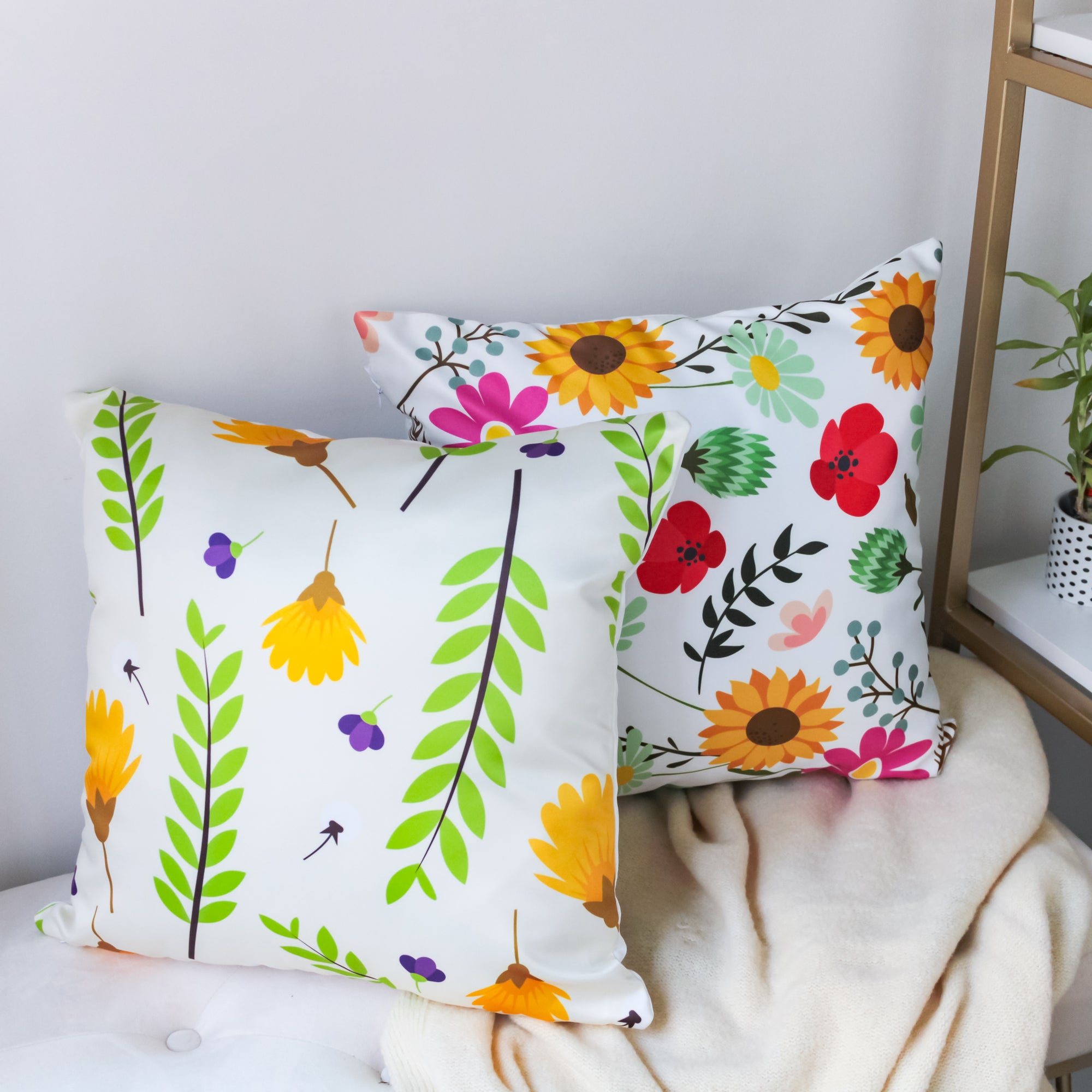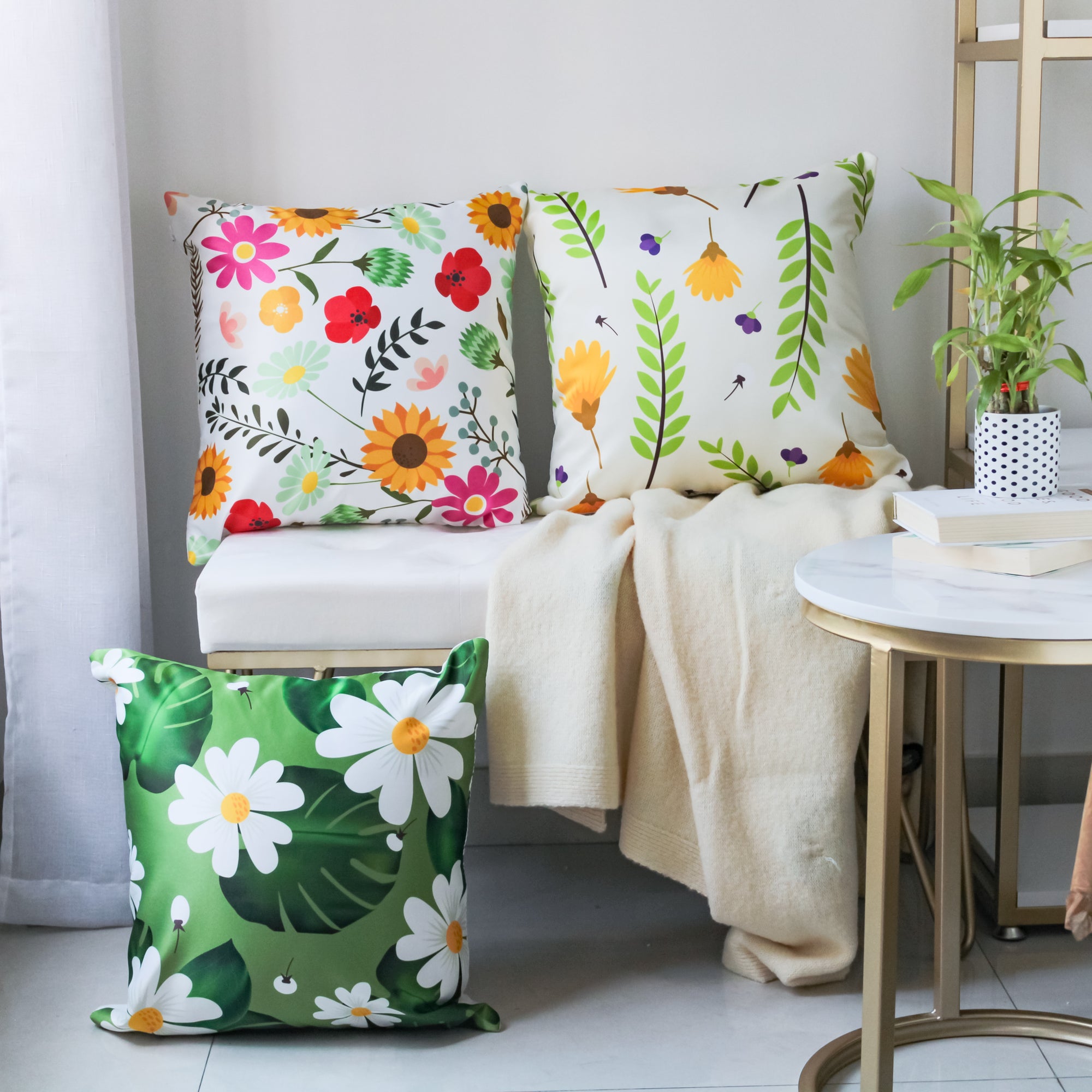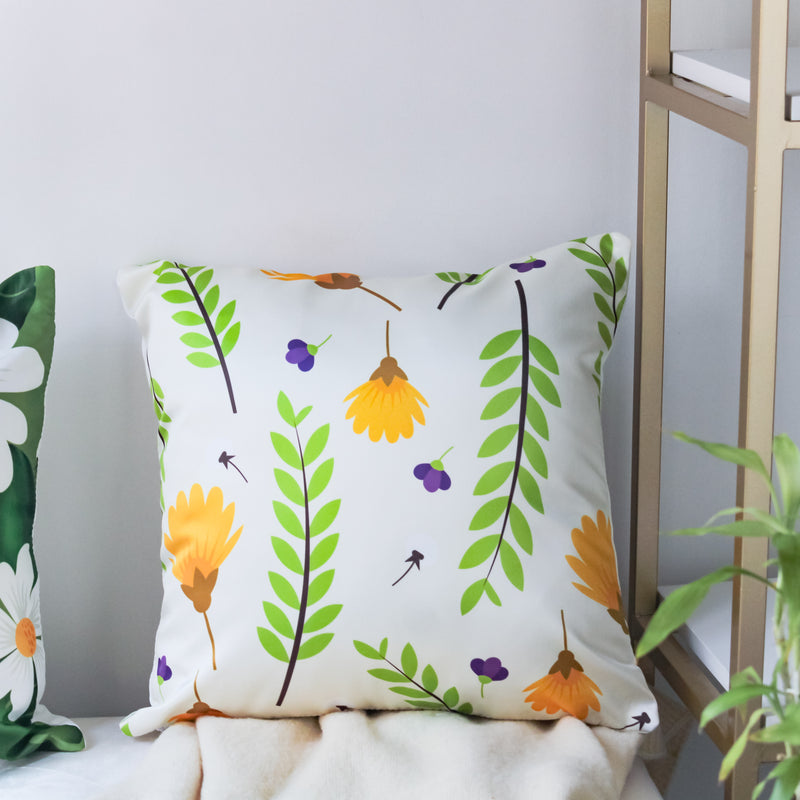 Floral cushion cover available in 3 exciting patterns and colors. The sofa cushion cover brings a cheerful vibe into the room. Tailored into a square shape, the 45x45 cushion cover is made of excellent quality material and is equipped with a zip. The printed pillow case can fit well into a variety of decor settings.