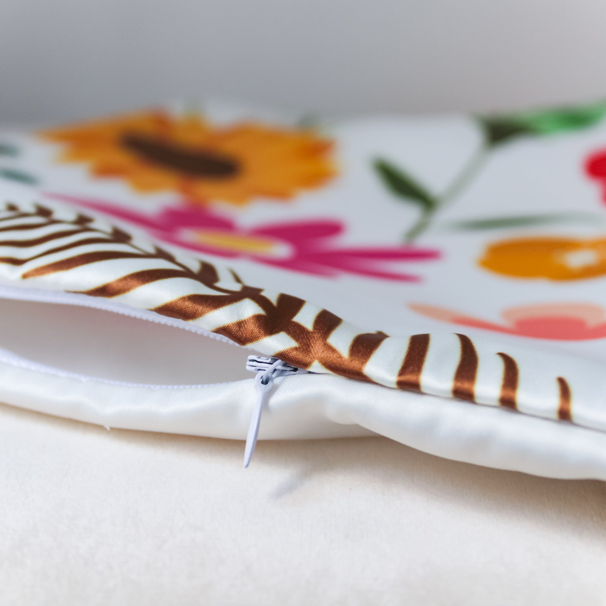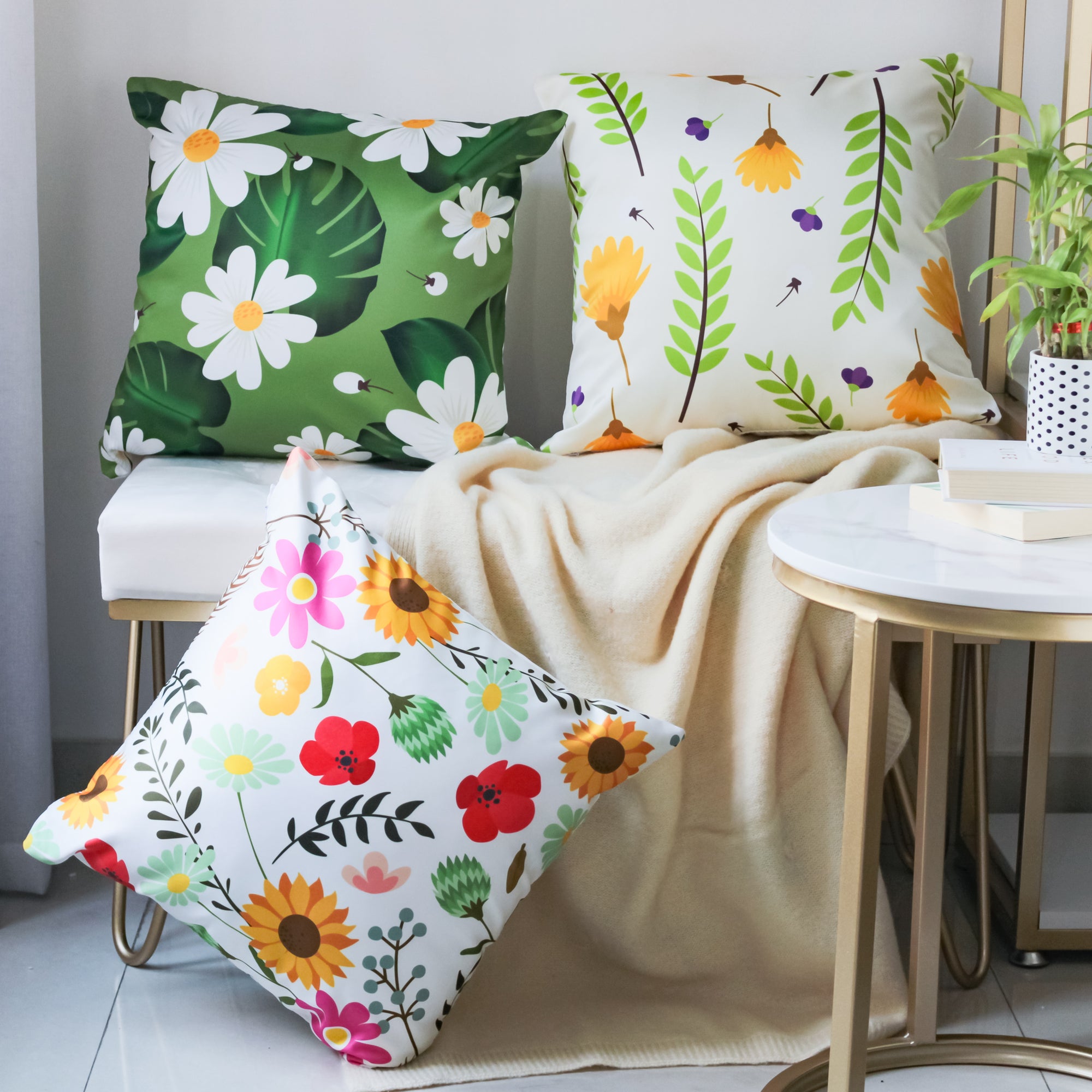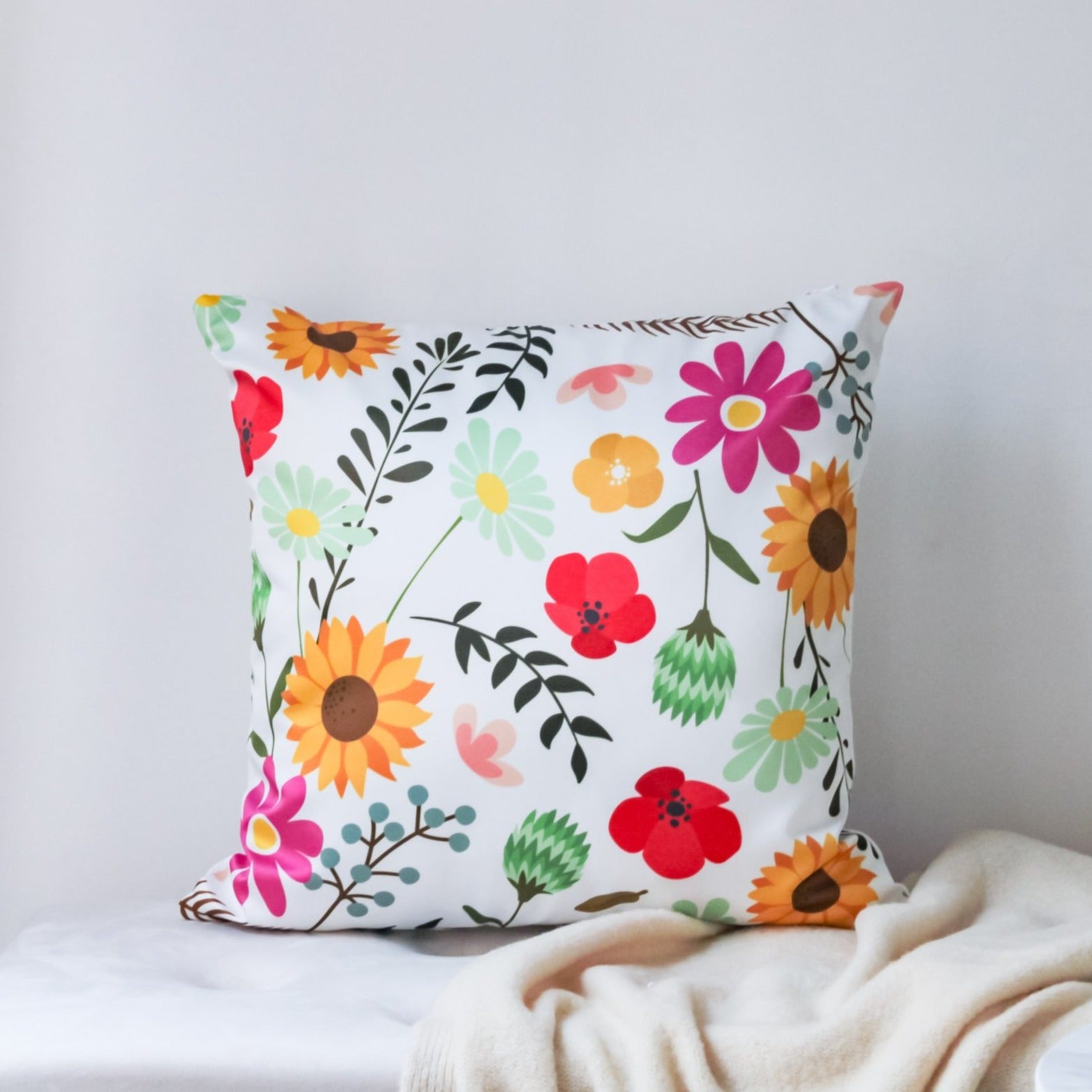 Floral cushion cover available in 3 exciting patterns and colors. The sofa cushion cover brings a cheerful vibe into the room. Tailored into a square shape, the 45x45 cushion cover is made of excellent quality material and is equipped with a zip. The printed pillow case can fit well into a variety of decor settings.