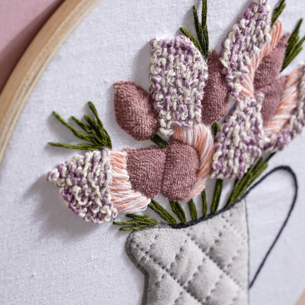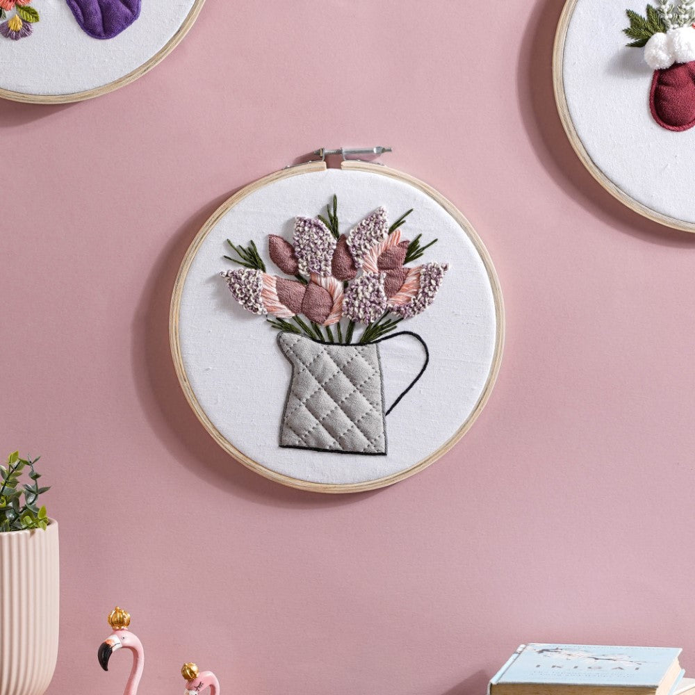 Flower Vase Hand Embroidered Hoop Wall Hanging 10 Inch