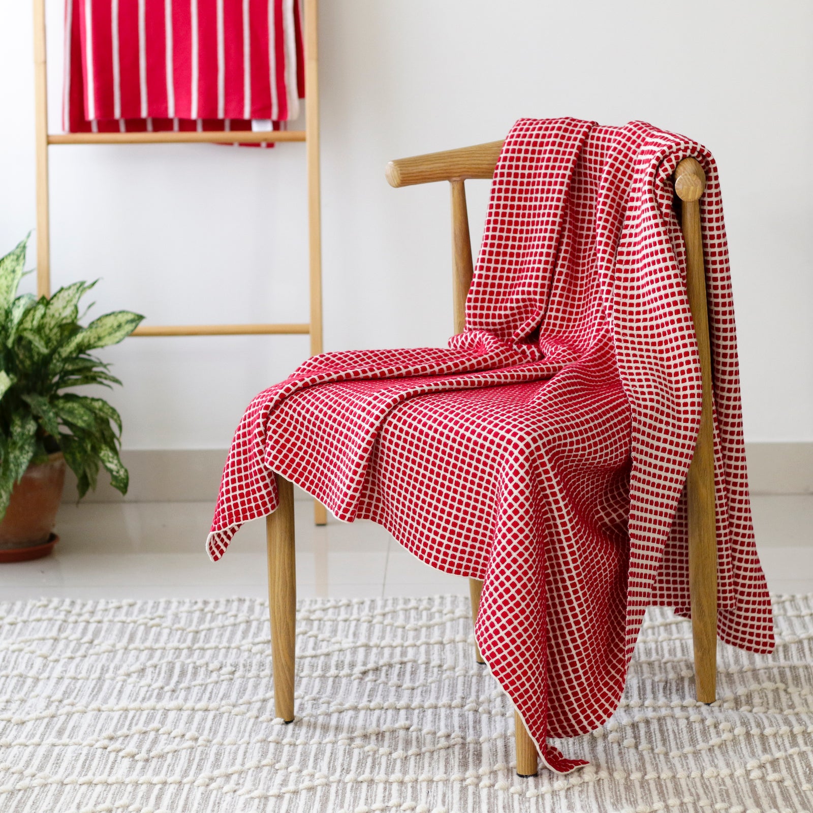 Woven Fluffy Blanket with very fine cotton, this throw is very comfortable and would keep anyone warm and cosy. A versatile throw that can be used all through the year. The red and white combination adds to its versitality as it can be used by men and women and across all age groups.