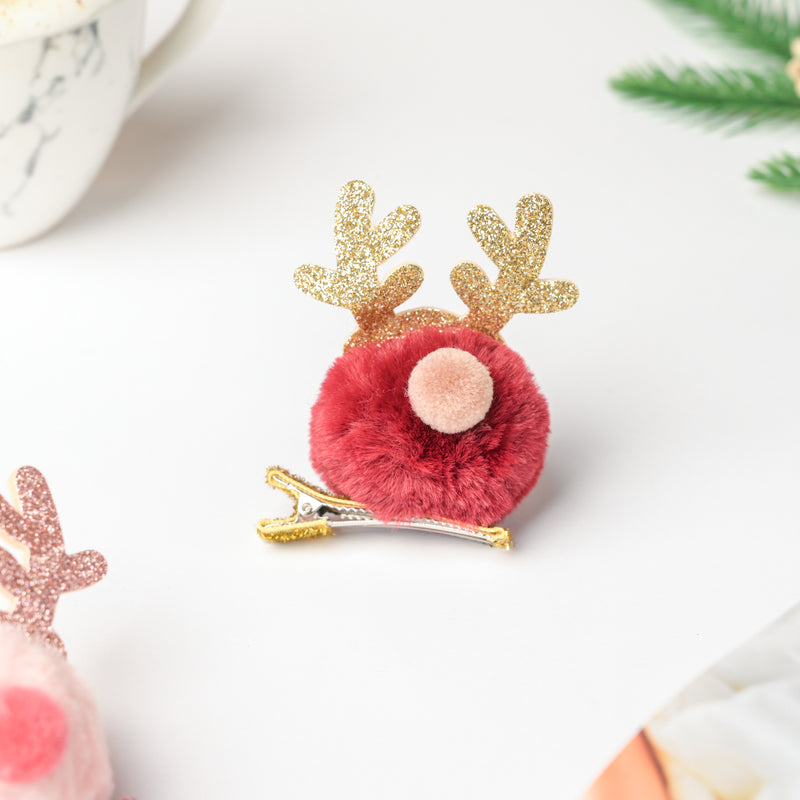 Fluffy Reindeer Hairpin Red