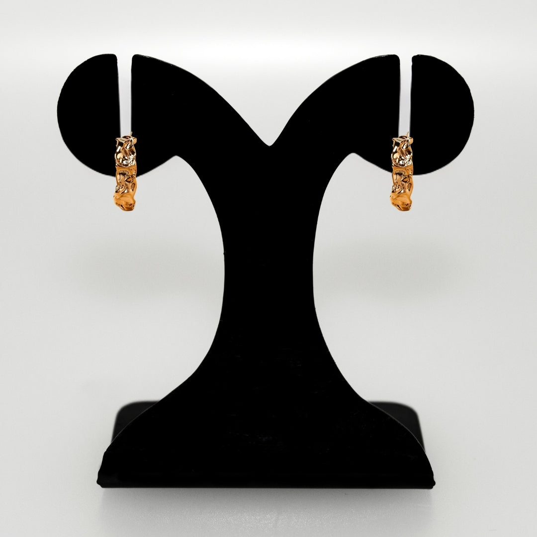 Distilled to its bold, raw form, these J hoop earrings are a testament to the artistry of metalwork. Drawing inspiration from the strength and precision of welding, the earrings' design captures the delicate balance between structural integrity and fluid, organic form. The gold finish, complemented by a wavy hammered texture, adds depth and sophistication, making these earrings both powerful and elegant.