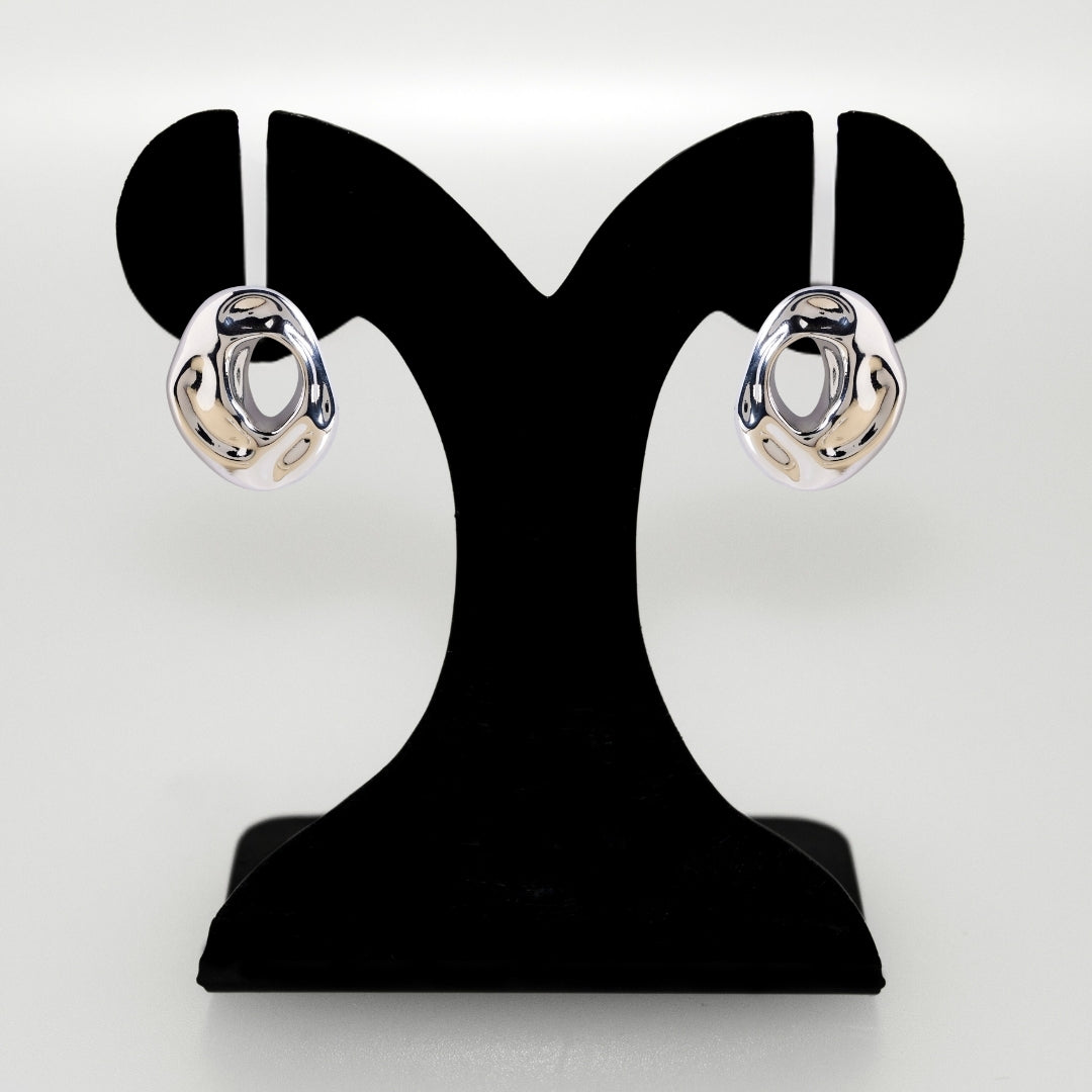 Elevate your style with these stunning silver-toned metal statement earrings. Featuring a captivating oval shape with a striking hollow centre, these earrings embody a unique abstract textured design reminiscent of modern fluid art. Each earring showcases intricate patterns that flow seamlessly, capturing the beauty of movement and creativity. Perfect for adding a touch of sophistication to any outfit, they are ideal for both casual outings and elegant events. Inspired by contemporary artistry, these earrings make a bold statement while celebrating the beauty of abstraction in design. Embrace your individuality with this exquisite piece!