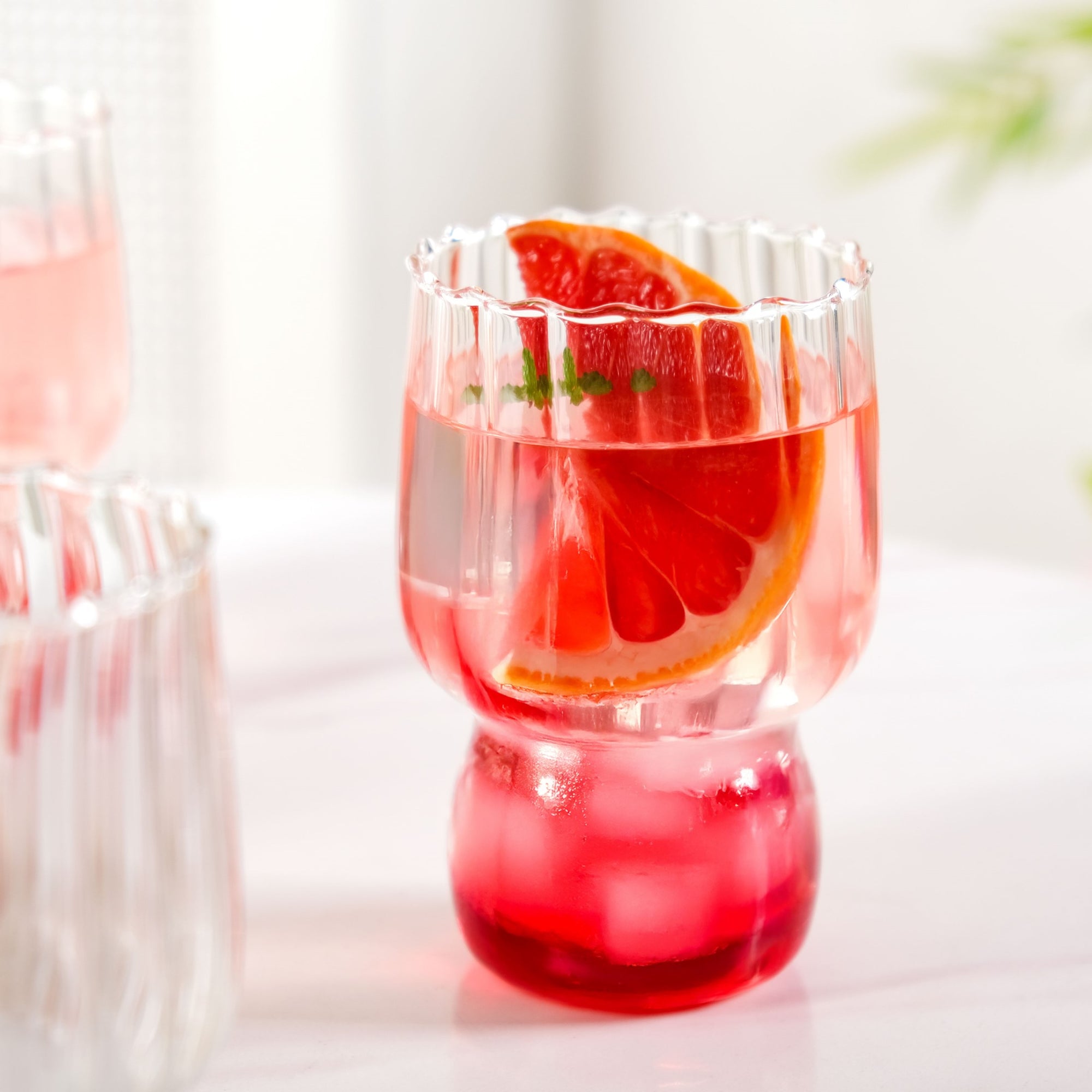Design: This set of 4 fluted tumblers is made from high-grade borosilicate glass, prized for its clarity, durability, and finesse. The ribbed interior adds visual depth, making even the simplest drink look sophisticated. A smooth, glossy exterior gives it a clean, modern feel, while the subtly wavy rim adds a playful detail. The gently curved midsection offers a comfortable grip, balancing elegance with practicality. Designed with clean lines and soft contours, these tumblers transition effortlessly from everyday use to special occasions.