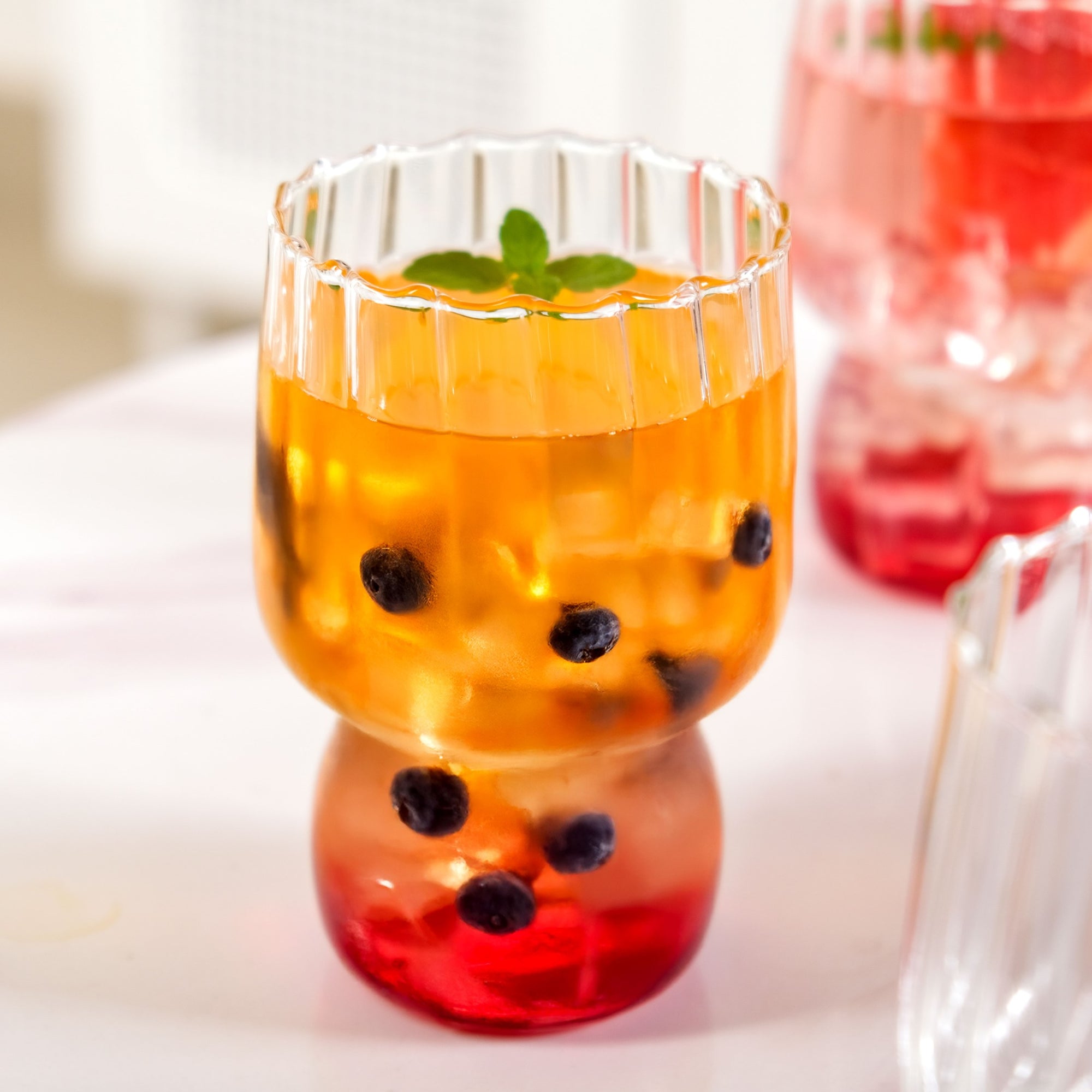 Benefit: Built with heat and scratch-resistant borosilicate glass, these tumblers are perfect for both hot and cold drinks. The contoured grip ensures comfort in every sip, even for smaller hands. Their smooth surface cleans easily, and the space-saving shape stacks neatly in your cabinet. The ribbed interior enhances the look of any drink without extra effort. Durable, versatile, and effortlessly stylish, this set is where function meets thoughtful design.