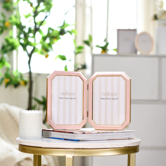 Introducing our exquisite foldable photo frames, where premium quality meets elegant design. Crafted from a blend of high-quality aluminium and resilient resin, these frames are the epitome of durability and style. Whether you choose to display them on your desk or shelf or prefer to hang them on your wall, they offer versatile options for showcasing your cherished memories. The frames boast a sturdy easel stand for hassle-free placement on any flat surface, ensuring your photos stand out with grace. Alternatively, a convenient back hook allows for easy wall mounting, adding a touch of sophistication to your decor.
