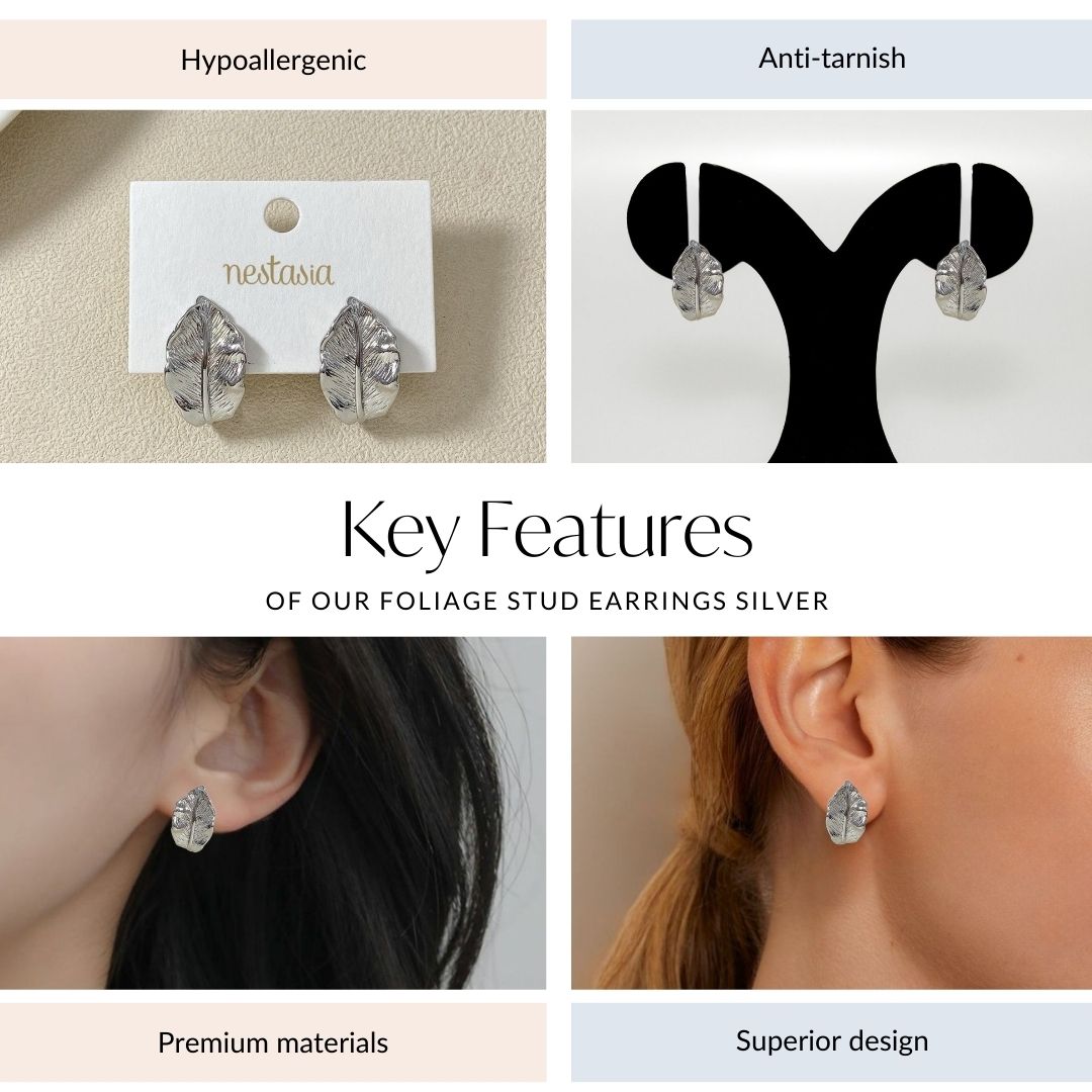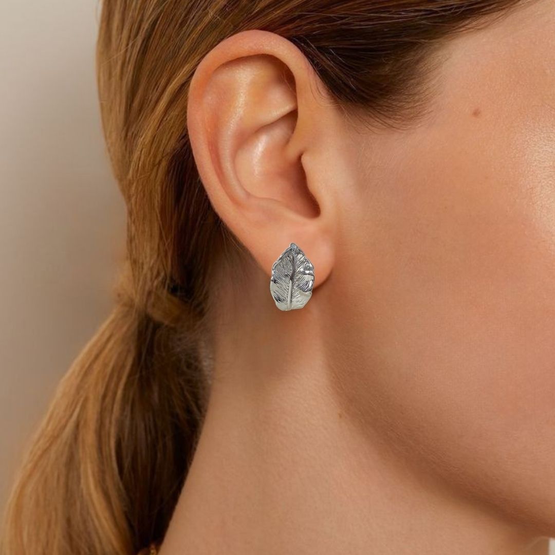 Discover the beauty of nature's finest creations with these elegant stud earrings. Inspired by the raw textures and unexplored intrigue of the jungle, these earrings capture the essence of nature's hidden wonders. The intricate leaf design, delicately crafted in silver, showcases every vein and curve, bringing a touch of wilderness to your everyday style. Perfect for adding an elegant yet adventurous flair to your jewellery collection.