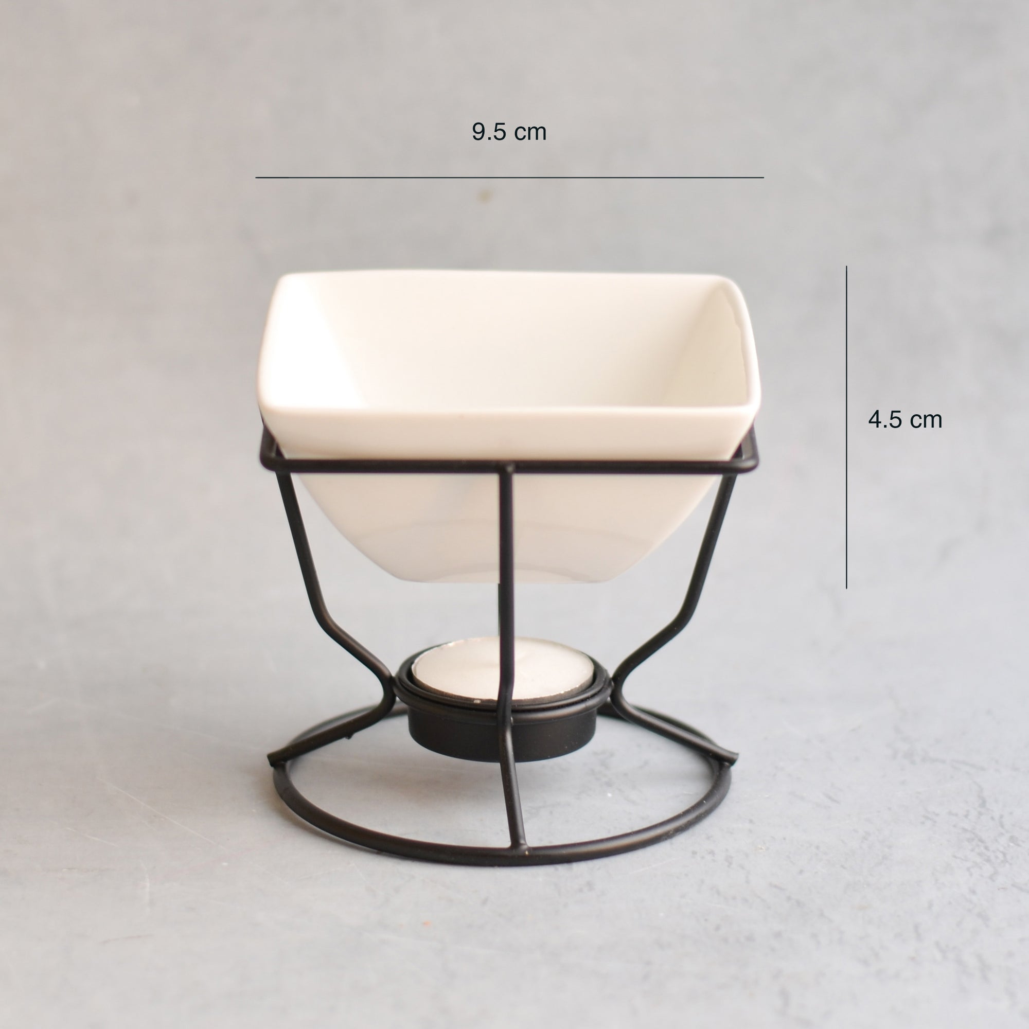 Fondue dish that comes with a fondue pot and metal stand to hold the bowl and keep it warm with a tea light candle. The fondue maker can be used at a winter party for a serving of warm cheese fondue or chocolate fondue with bread sticks, buns, veggies or fruits.