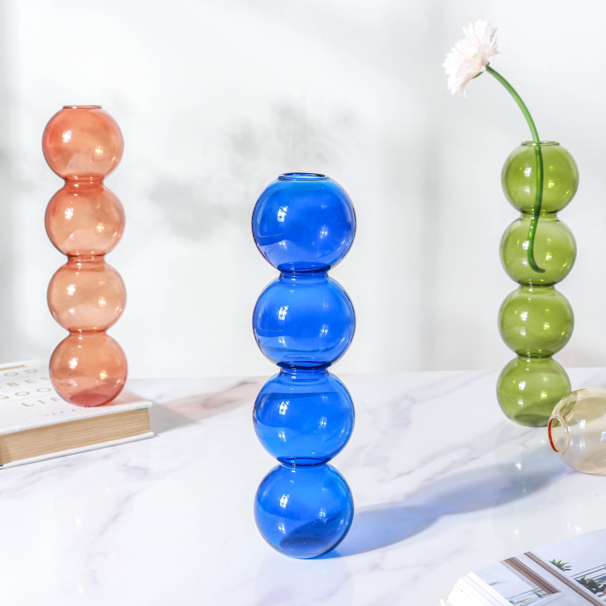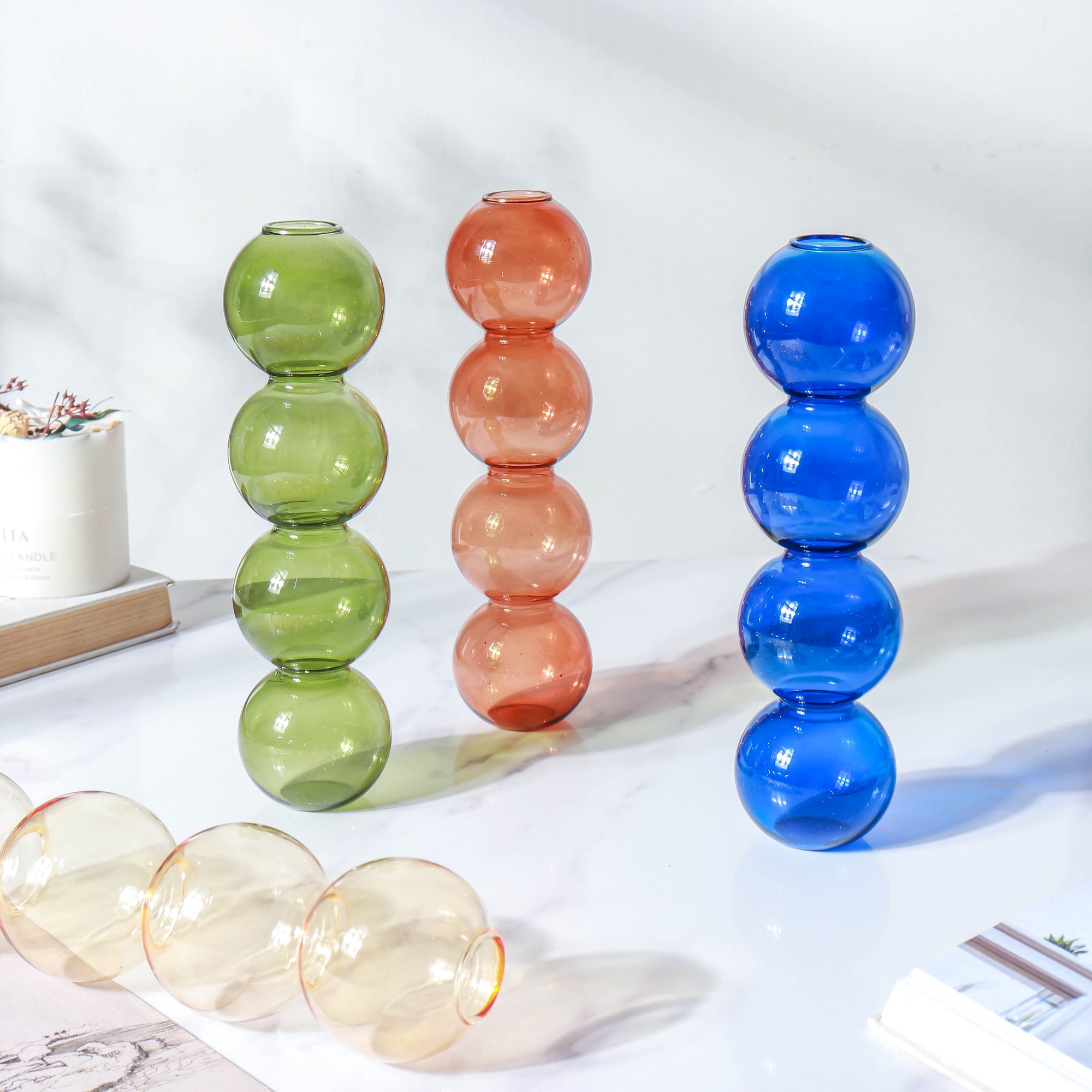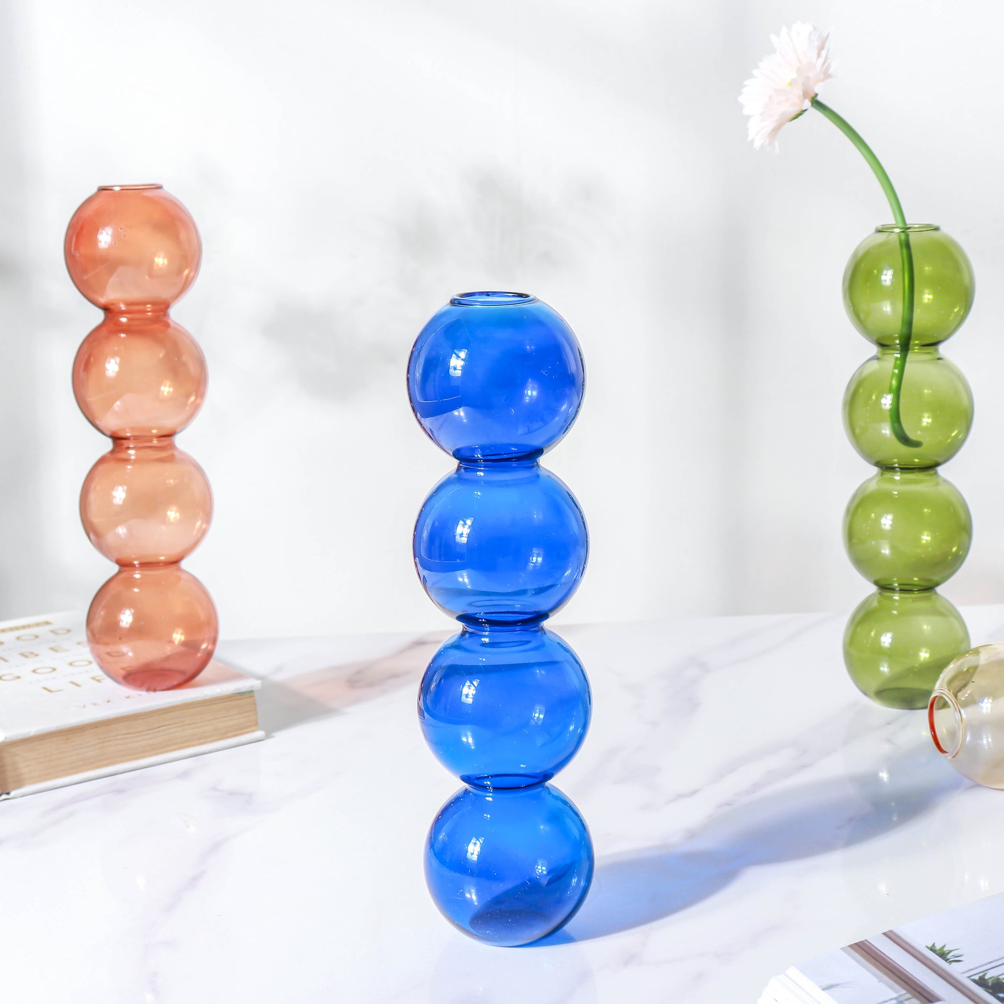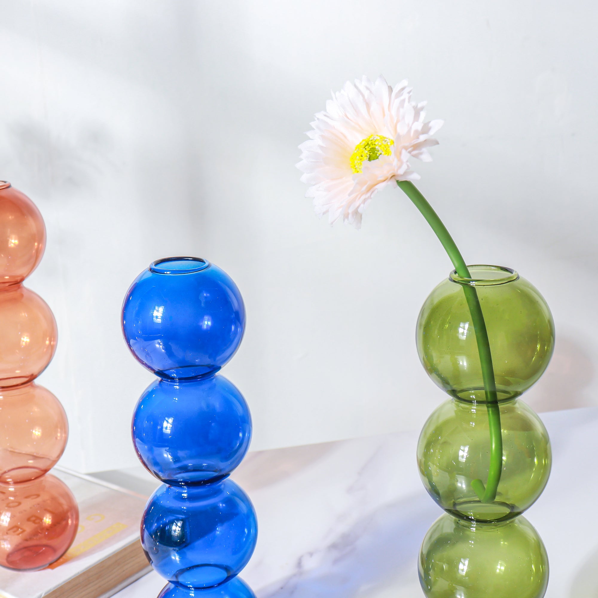The round glass vase is created exclusively to amp the decor game. The vase's simple design allows it to blend in with any color scheme and complement any décor. It is made up of four colored glass rings that are stacked on top of one other to make a sculptural glass vase.