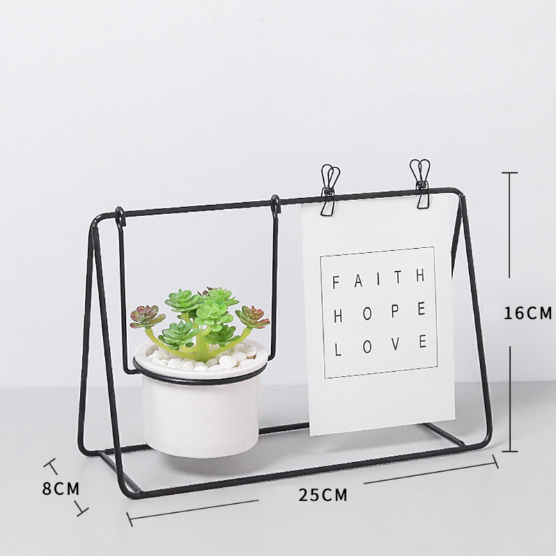 The ceramic white planter vase with a metal stand and a faux succulent that will always remain fresh and add vibrance to the space. The ceramic vase and the fusion of metal with a combination of picture hanger adds a minimalist and quirky vibe to the decor. It can be used as a table centrepiece and can also be given as a gift on occasions like housewarming, anniversary or wedding.
